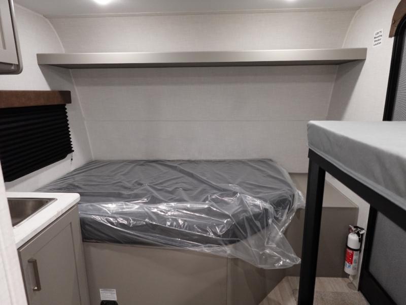 With any Hideout Mini travel trailer by Keystone, you will enjoy lightweight towing thanks to their single-axle! The AlphaPly TPO roof membrane is ultra durable, and the power awning will provide protection from the sun as you relax in your camp chairs outside. Each model includes blackout night shades, LED lighting, plus many more interior comforts. There is also a roof A/C and 20K BTU furnace to keep you comfortable, plus a tankless water heater for endless hot showers!