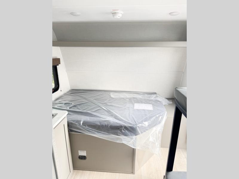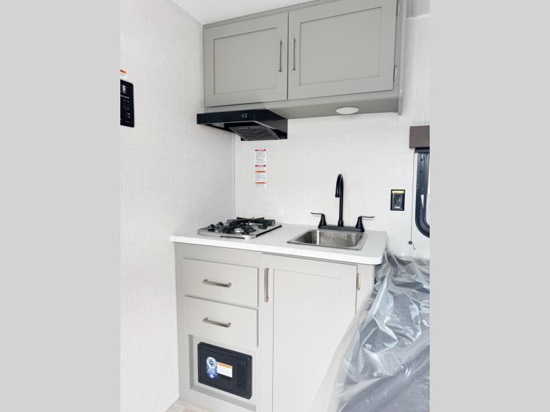 With any Hideout Mini travel trailer by Keystone, you will enjoy lightweight towing thanks to their single-axle! The AlphaPly TPO roof membrane is ultra durable, and the power awning will provide protection from the sun as you relax in your camp chairs outside. Each model includes blackout night shades, LED lighting, plus many more interior comforts. There is also a roof A/C and 20K BTU furnace to keep you comfortable, plus a tankless water heater for endless hot showers!