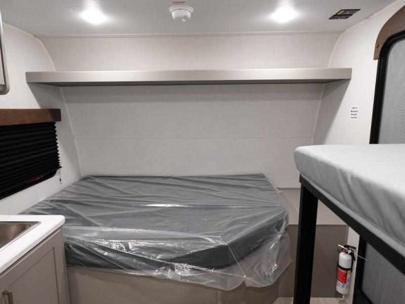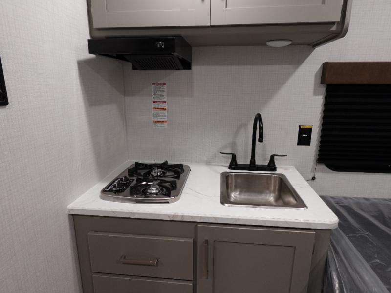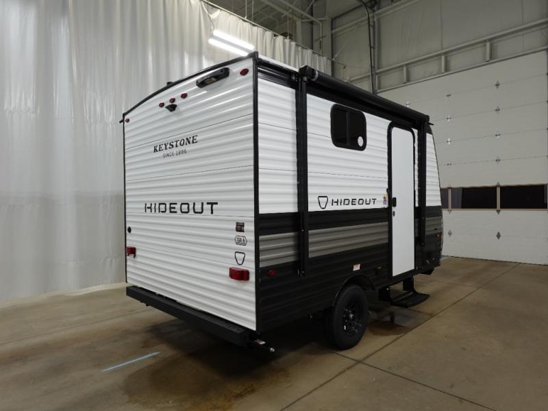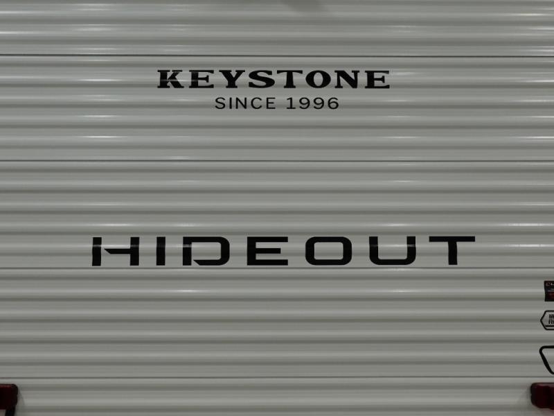 With any Hideout Mini travel trailer by Keystone, you will enjoy lightweight towing thanks to their single-axle! The AlphaPly TPO roof membrane is ultra durable, and the power awning will provide protection from the sun as you relax in your camp chairs outside. Each model includes blackout night shades, LED lighting, plus many more interior comforts. There is also a roof A/C and 20K BTU furnace to keep you comfortable, plus a tankless water heater for endless hot showers!