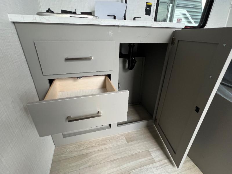 With any Hideout Mini travel trailer by Keystone, you will enjoy lightweight towing thanks to their single-axle! The AlphaPly TPO roof membrane is ultra durable, and the power awning will provide protection from the sun as you relax in your camp chairs outside. Each model includes blackout night shades, LED lighting, plus many more interior comforts. There is also a roof A/C and 20K BTU furnace to keep you comfortable, plus a tankless water heater for endless hot showers!