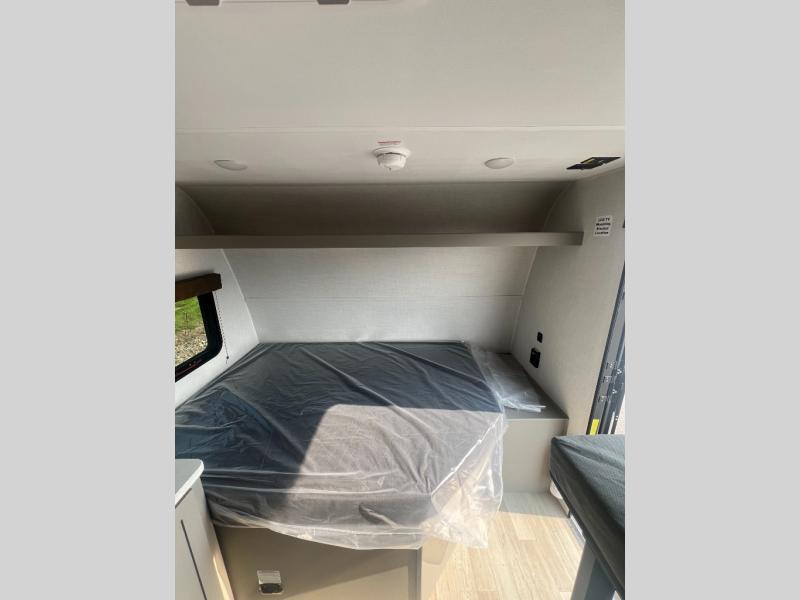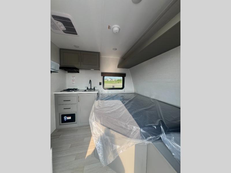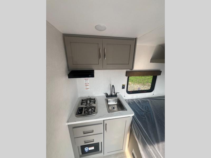 With any Hideout Mini travel trailer by Keystone, you will enjoy lightweight towing thanks to their single-axle! The AlphaPly TPO roof membrane is ultra durable, and the power awning will provide protection from the sun as you relax in your camp chairs outside. Each model includes blackout night shades, LED lighting, plus many more interior comforts. There is also a roof A/C and 20K BTU furnace to keep you comfortable, plus a tankless water heater for endless hot showers!