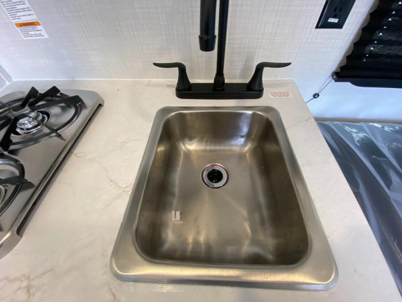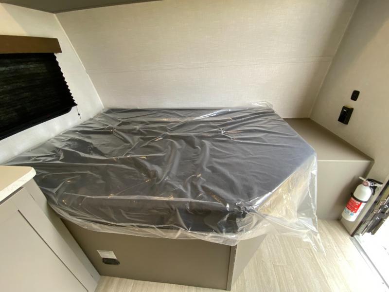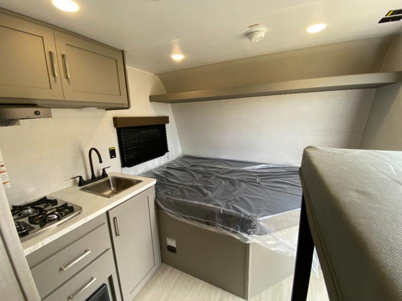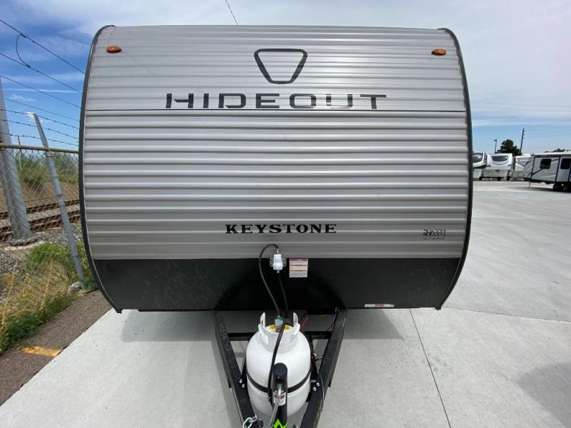 With any Hideout Mini travel trailer by Keystone, you will enjoy lightweight towing thanks to their single-axle! The AlphaPly TPO roof membrane is ultra durable, and the power awning will provide protection from the sun as you relax in your camp chairs outside. Each model includes blackout night shades, LED lighting, plus many more interior comforts. There is also a roof A/C and 20K BTU furnace to keep you comfortable, plus a tankless water heater for endless hot showers!