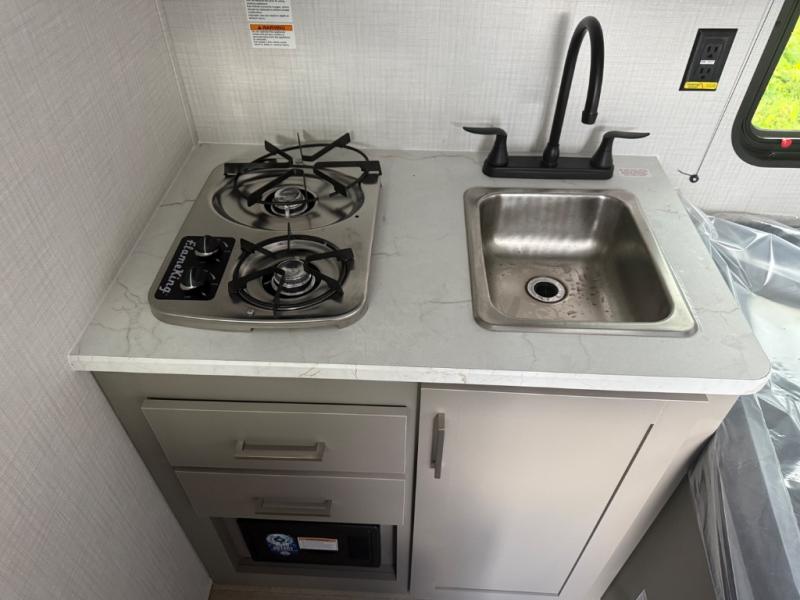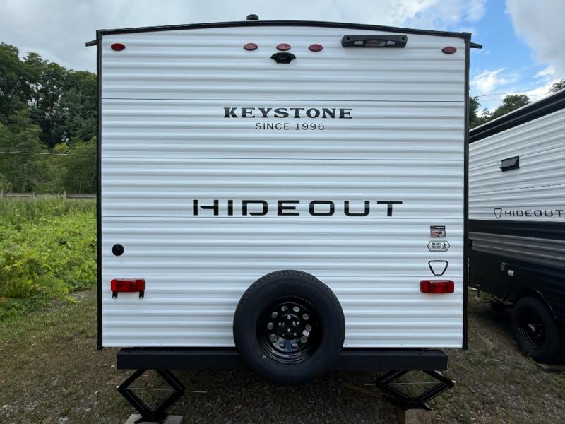 With any Hideout Mini travel trailer by Keystone, you will enjoy lightweight towing thanks to their single-axle! The AlphaPly TPO roof membrane is ultra durable, and the power awning will provide protection from the sun as you relax in your camp chairs outside. Each model includes blackout night shades, LED lighting, plus many more interior comforts. There is also a roof A/C and 20K BTU furnace to keep you comfortable, plus a tankless water heater for endless hot showers!