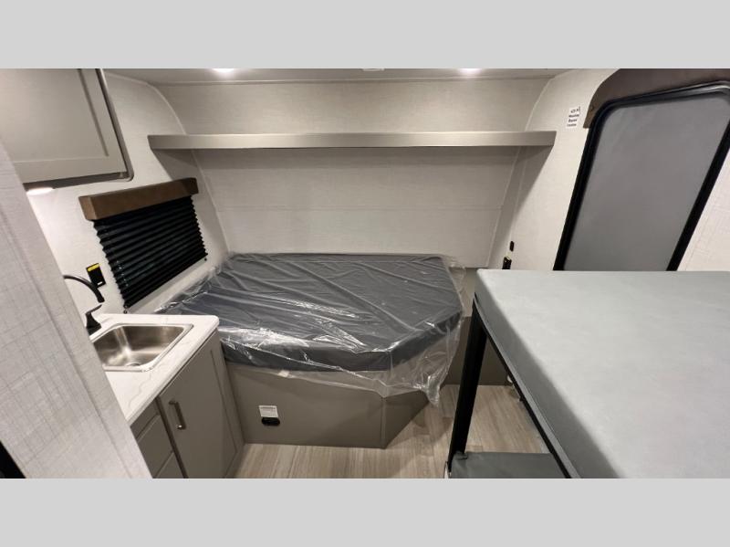 With any Hideout Mini travel trailer by Keystone, you will enjoy lightweight towing thanks to their single-axle! The AlphaPly TPO roof membrane is ultra durable, and the power awning will provide protection from the sun as you relax in your camp chairs outside. Each model includes blackout night shades, LED lighting, plus many more interior comforts. There is also a roof A/C and 20K BTU furnace to keep you comfortable, plus a tankless water heater for endless hot showers!