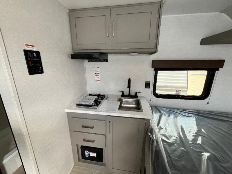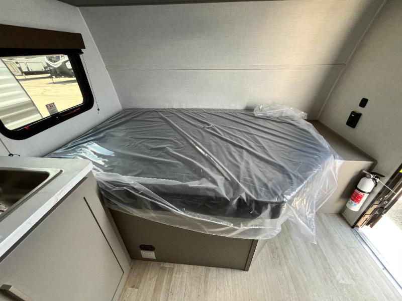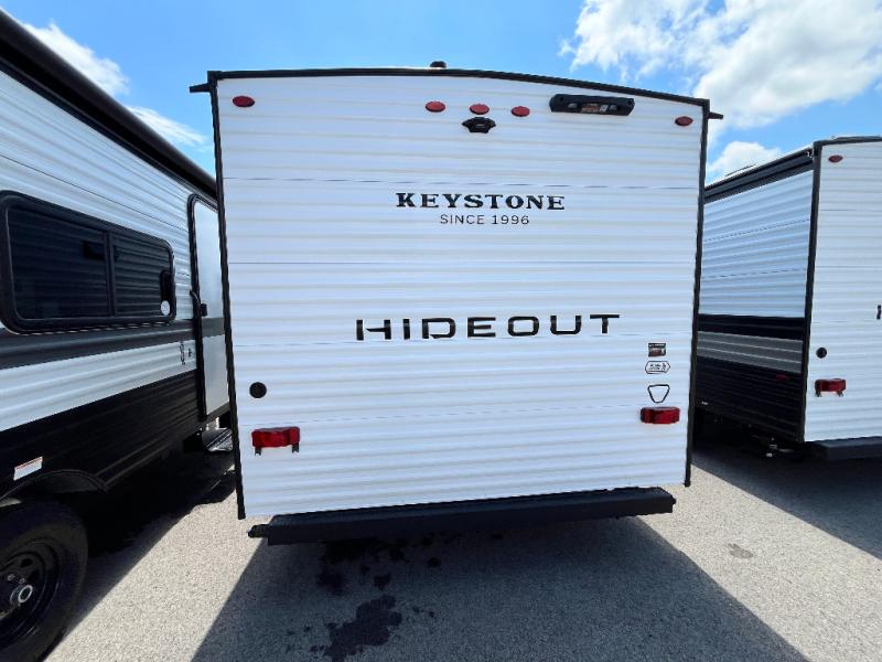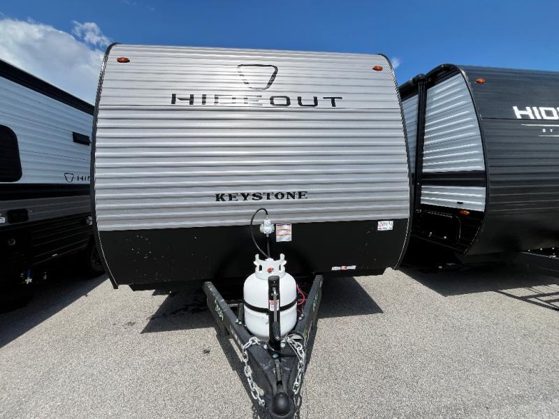 With any Hideout Mini travel trailer by Keystone, you will enjoy lightweight towing thanks to their single-axle! The AlphaPly TPO roof membrane is ultra durable, and the power awning will provide protection from the sun as you relax in your camp chairs outside. Each model includes blackout night shades, LED lighting, plus many more interior comforts. There is also a roof A/C and 20K BTU furnace to keep you comfortable, plus a tankless water heater for endless hot showers!