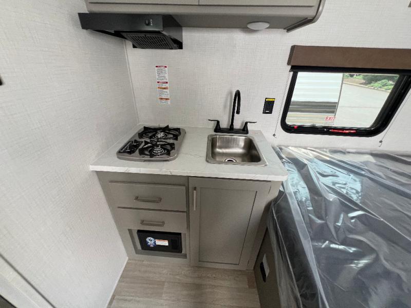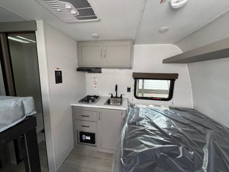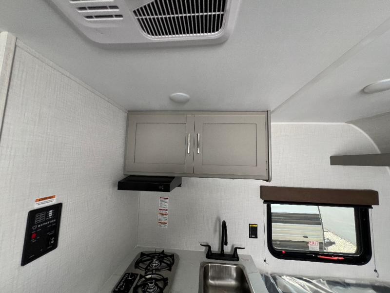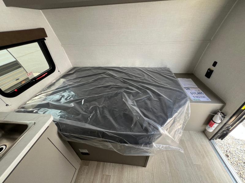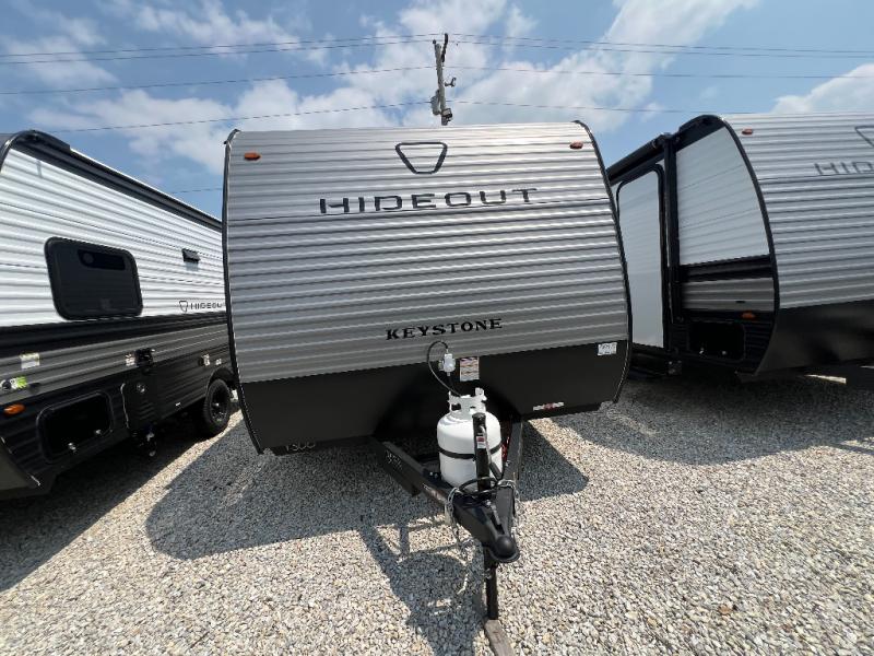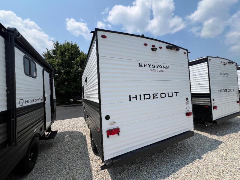 With any Hideout Mini travel trailer by Keystone, you will enjoy lightweight towing thanks to their single-axle! The AlphaPly TPO roof membrane is ultra durable, and the power awning will provide protection from the sun as you relax in your camp chairs outside. Each model includes blackout night shades, LED lighting, plus many more interior comforts. There is also a roof A/C and 20K BTU furnace to keep you comfortable, plus a tankless water heater for endless hot showers!