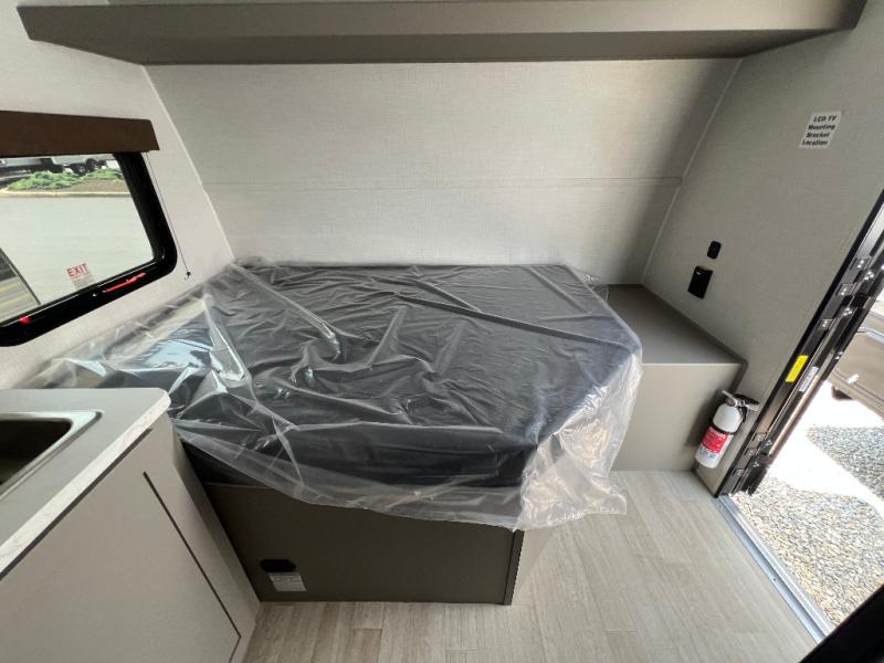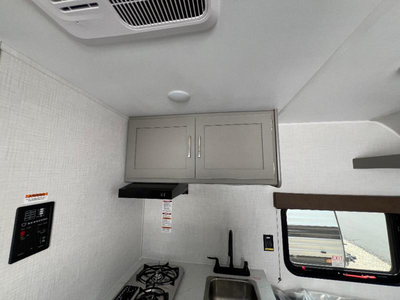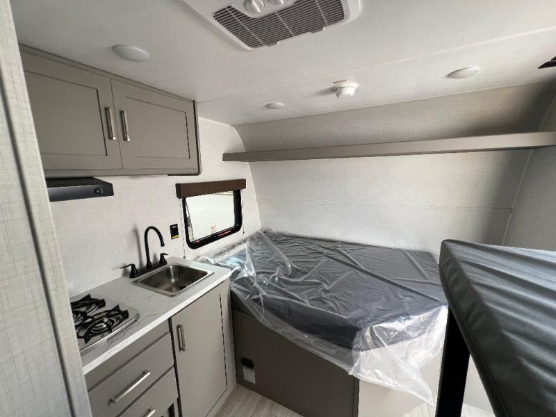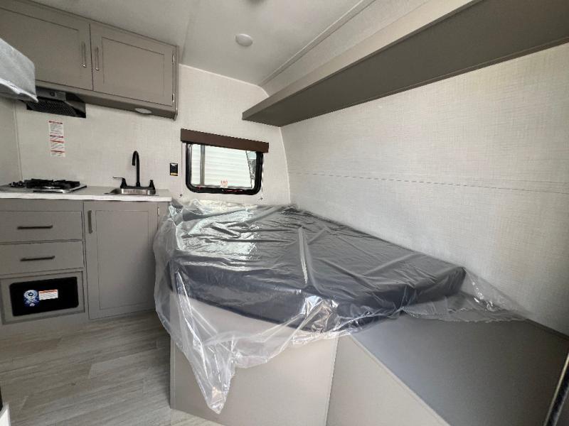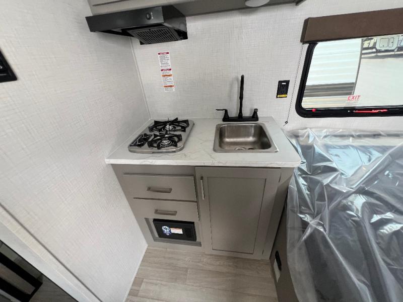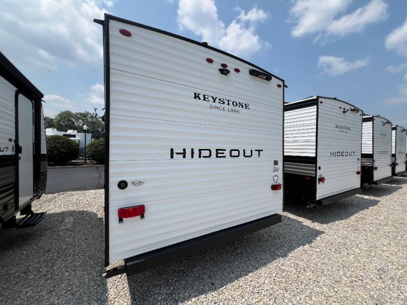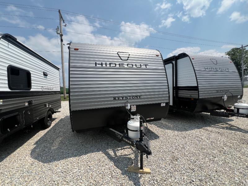 With any Hideout Mini travel trailer by Keystone, you will enjoy lightweight towing thanks to their single-axle! The AlphaPly TPO roof membrane is ultra durable, and the power awning will provide protection from the sun as you relax in your camp chairs outside. Each model includes blackout night shades, LED lighting, plus many more interior comforts. There is also a roof A/C and 20K BTU furnace to keep you comfortable, plus a tankless water heater for endless hot showers!