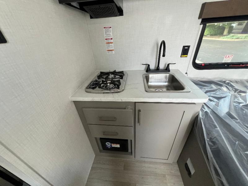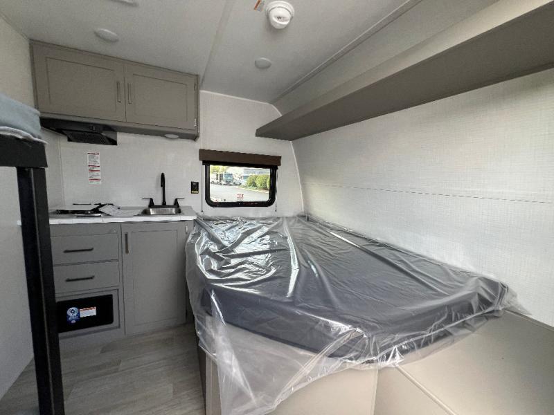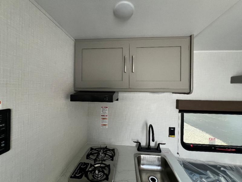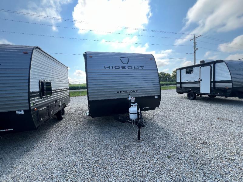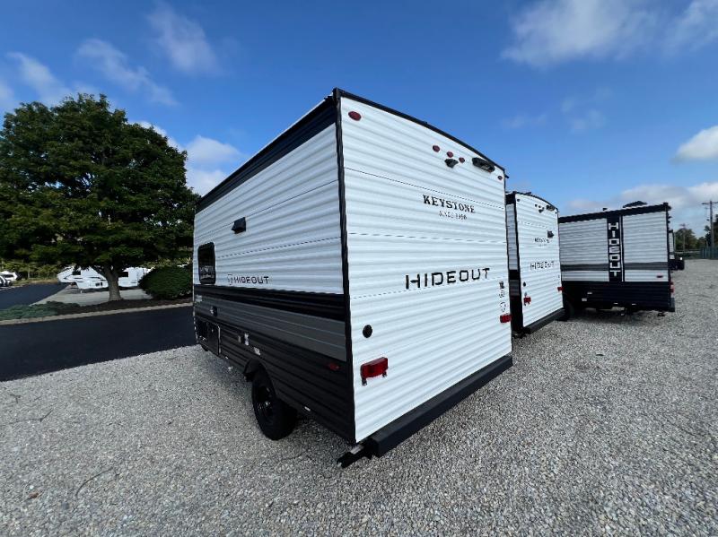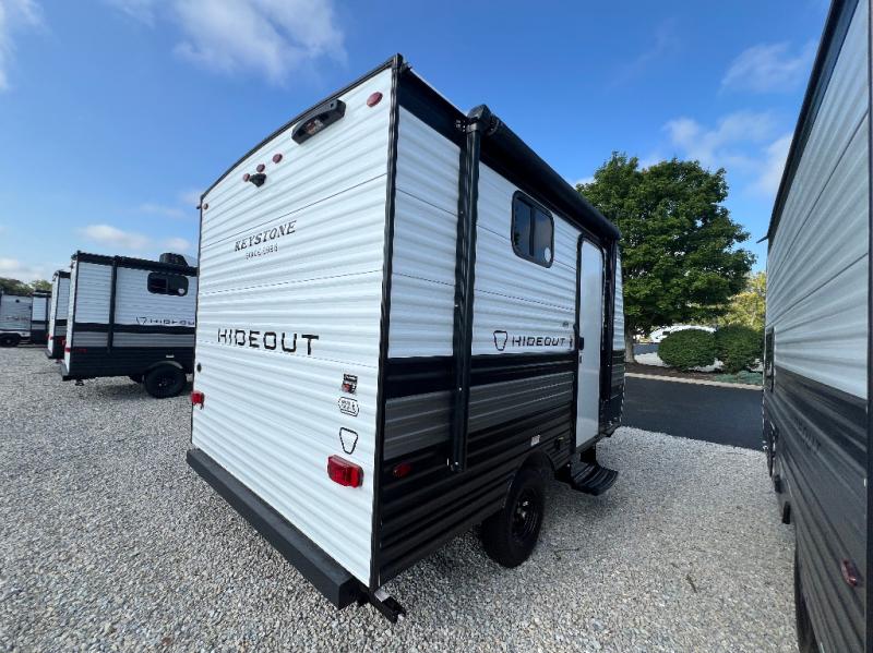 With any Hideout Mini travel trailer by Keystone, you will enjoy lightweight towing thanks to their single-axle! The AlphaPly TPO roof membrane is ultra durable, and the power awning will provide protection from the sun as you relax in your camp chairs outside. Each model includes blackout night shades, LED lighting, plus many more interior comforts. There is also a roof A/C and 20K BTU furnace to keep you comfortable, plus a tankless water heater for endless hot showers!