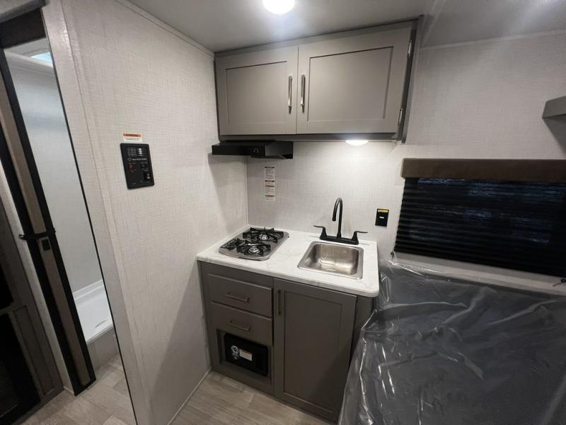 With any Hideout Mini travel trailer by Keystone, you will enjoy lightweight towing thanks to their single-axle! The AlphaPly TPO roof membrane is ultra durable, and the power awning will provide protection from the sun as you relax in your camp chairs outside. Each model includes blackout night shades, LED lighting, plus many more interior comforts. There is also a roof A/C and 20K BTU furnace to keep you comfortable, plus a tankless water heater for endless hot showers!