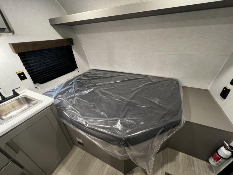 With any Hideout Mini travel trailer by Keystone, you will enjoy lightweight towing thanks to their single-axle! The AlphaPly TPO roof membrane is ultra durable, and the power awning will provide protection from the sun as you relax in your camp chairs outside. Each model includes blackout night shades, LED lighting, plus many more interior comforts. There is also a roof A/C and 20K BTU furnace to keep you comfortable, plus a tankless water heater for endless hot showers!