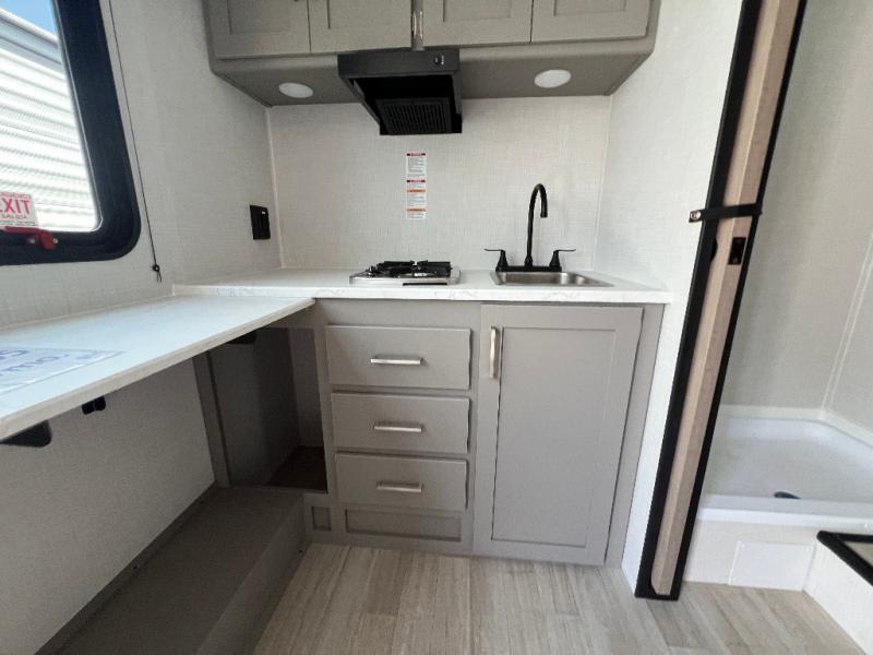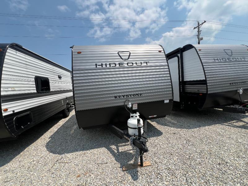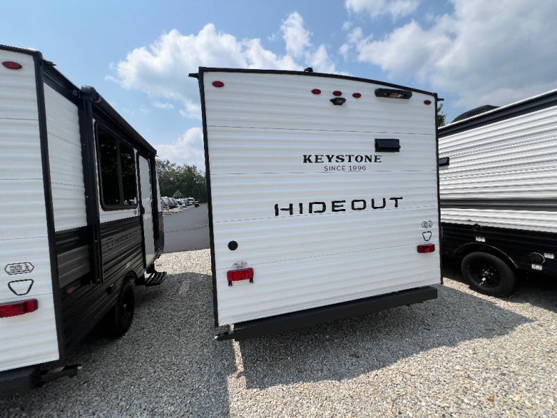 With any Hideout Mini travel trailer by Keystone, you will enjoy lightweight towing thanks to their single-axle! The AlphaPly TPO roof membrane is ultra durable, and the power awning will provide protection from the sun as you relax in your camp chairs outside. Each model includes blackout night shades, LED lighting, plus many more interior comforts. There is also a roof A/C and 20K BTU furnace to keep you comfortable, plus a tankless water heater for endless hot showers!