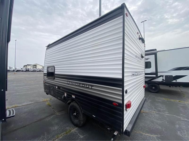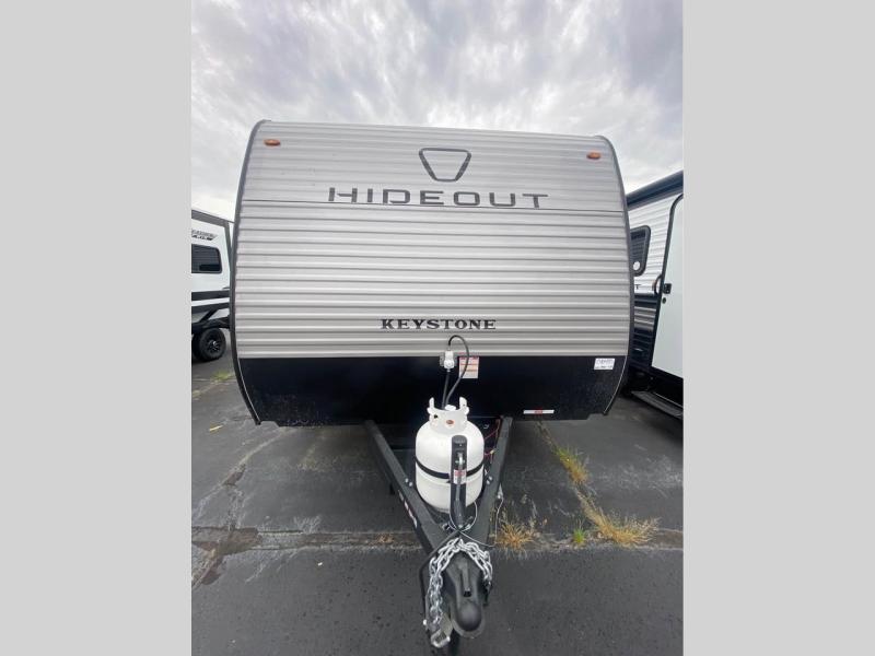 With any Hideout Mini travel trailer by Keystone, you will enjoy lightweight towing thanks to their single-axle! The AlphaPly TPO roof membrane is ultra durable, and the power awning will provide protection from the sun as you relax in your camp chairs outside. Each model includes blackout night shades, LED lighting, plus many more interior comforts. There is also a roof A/C and 20K BTU furnace to keep you comfortable, plus a tankless water heater for endless hot showers!
