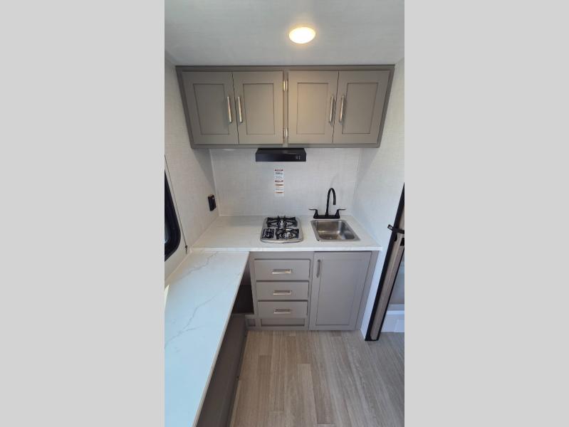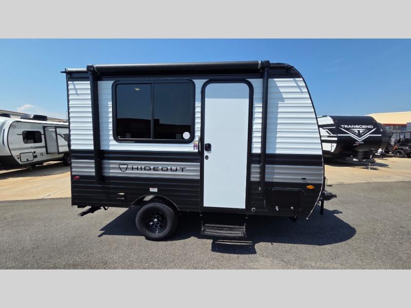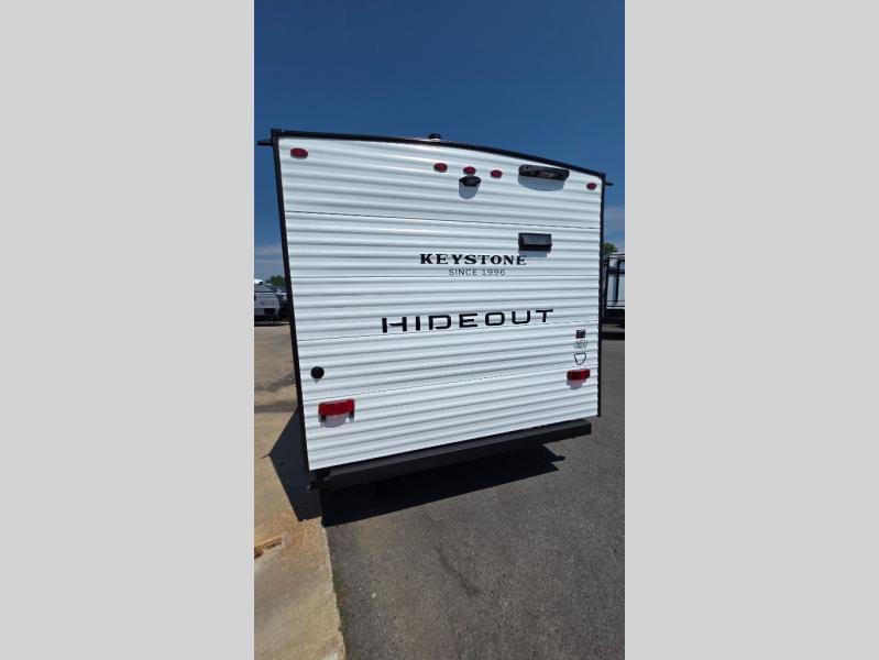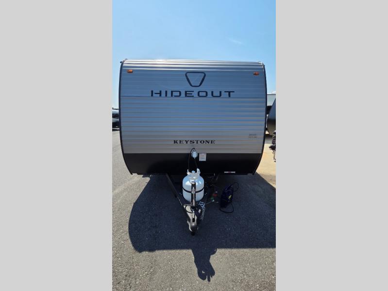 With any Hideout Mini travel trailer by Keystone, you will enjoy lightweight towing thanks to their single-axle! The AlphaPly TPO roof membrane is ultra durable, and the power awning will provide protection from the sun as you relax in your camp chairs outside. Each model includes blackout night shades, LED lighting, plus many more interior comforts. There is also a roof A/C and 20K BTU furnace to keep you comfortable, plus a tankless water heater for endless hot showers!