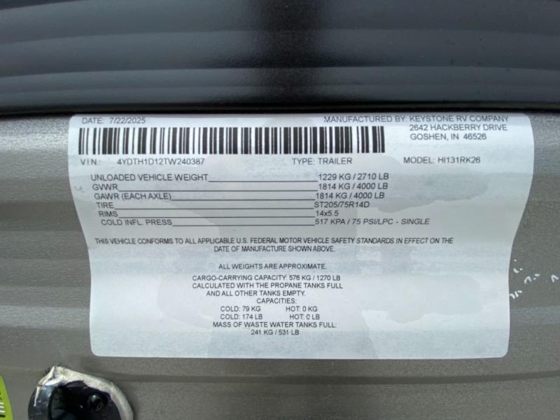New 2026 Keystone RV Hideout Mini 131RK Travel Trailer