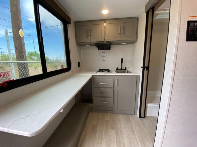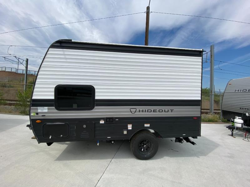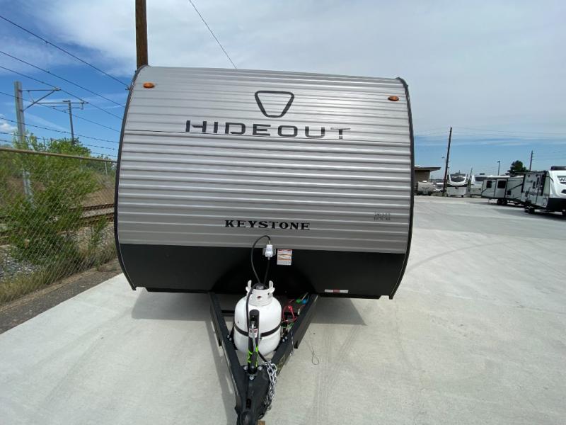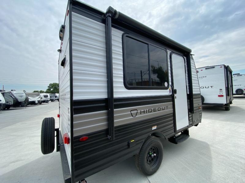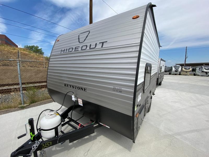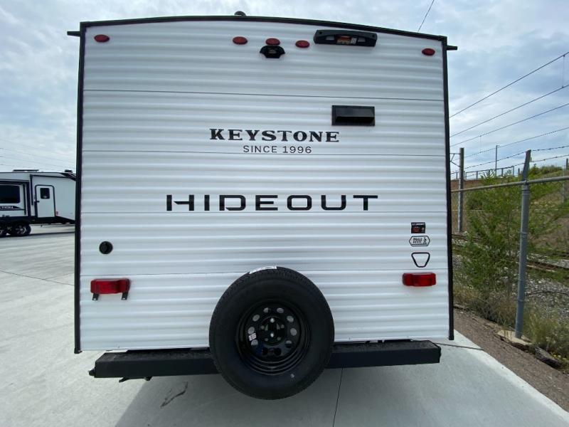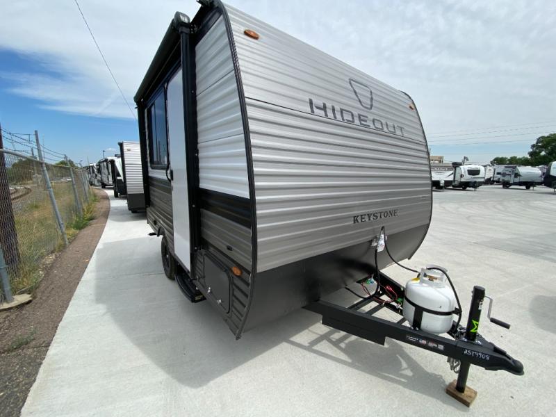 With any Hideout Mini travel trailer by Keystone, you will enjoy lightweight towing thanks to their single-axle! The AlphaPly TPO roof membrane is ultra durable, and the power awning will provide protection from the sun as you relax in your camp chairs outside. Each model includes blackout night shades, LED lighting, plus many more interior comforts. There is also a roof A/C and 20K BTU furnace to keep you comfortable, plus a tankless water heater for endless hot showers!