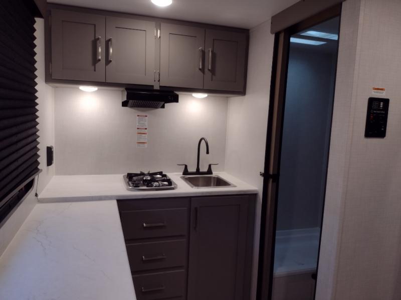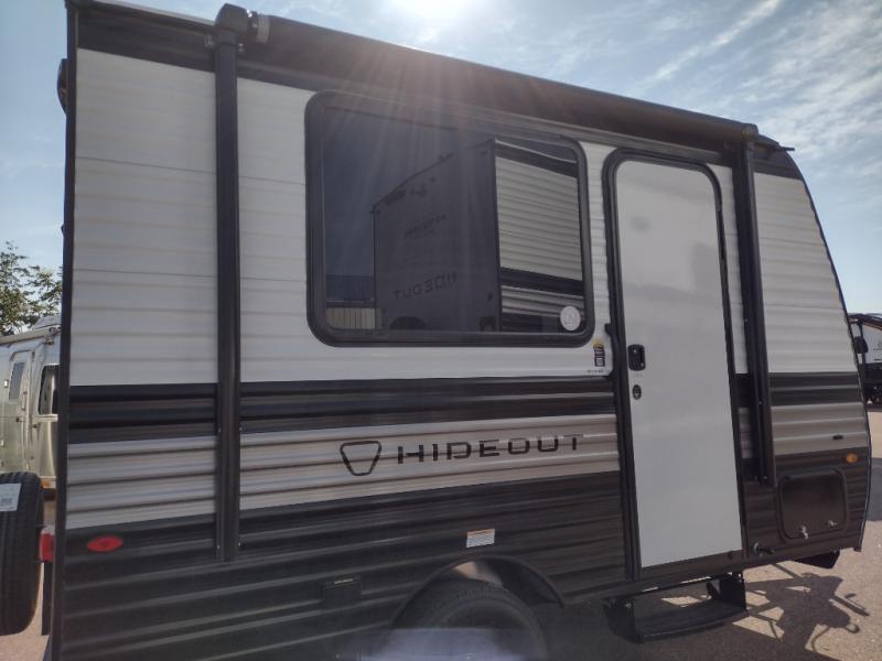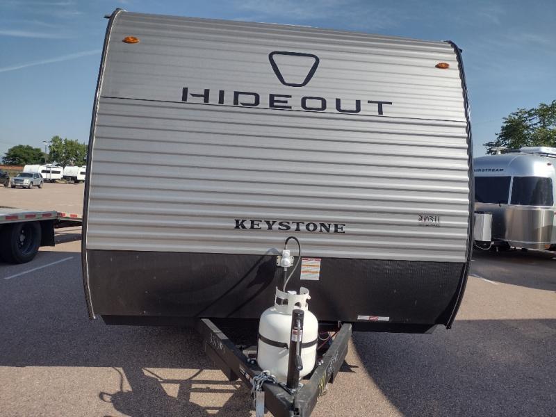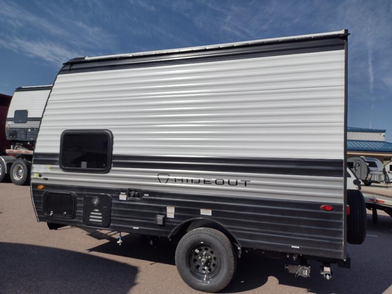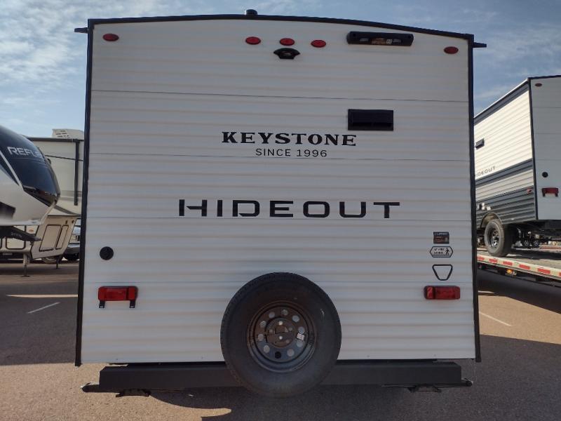With any Hideout Mini travel trailer by Keystone, you will enjoy lightweight towing thanks to their single-axle! The AlphaPly TPO roof membrane is ultra durable, and the power awning will provide protection from the sun as you relax in your camp chairs outside. Each model includes blackout night shades, LED lighting, plus many more interior comforts. There is also a roof A/C and 20K BTU furnace to keep you comfortable, plus a tankless water heater for endless hot showers!