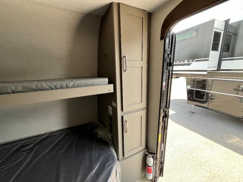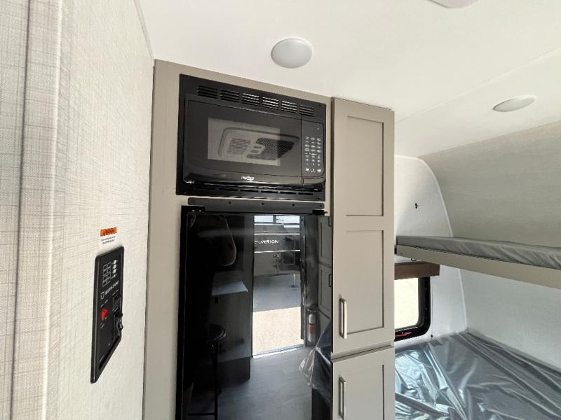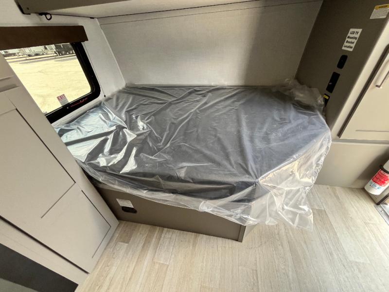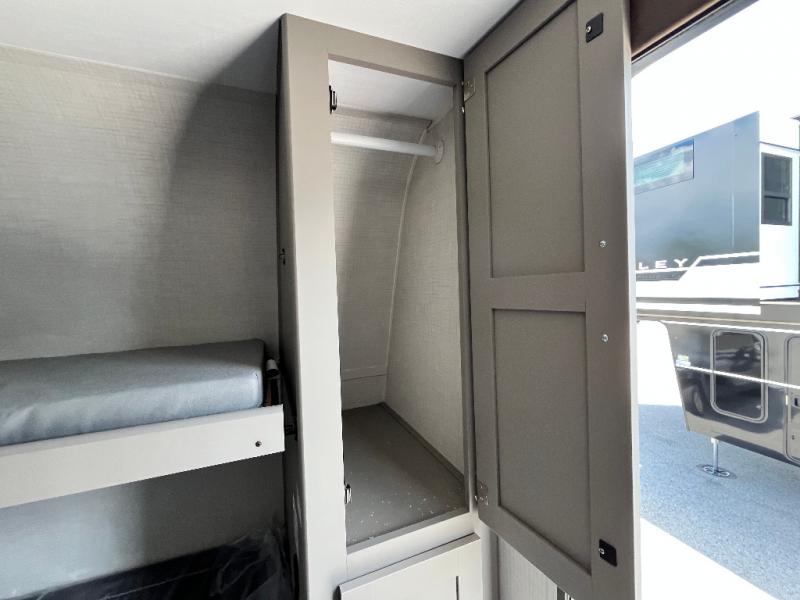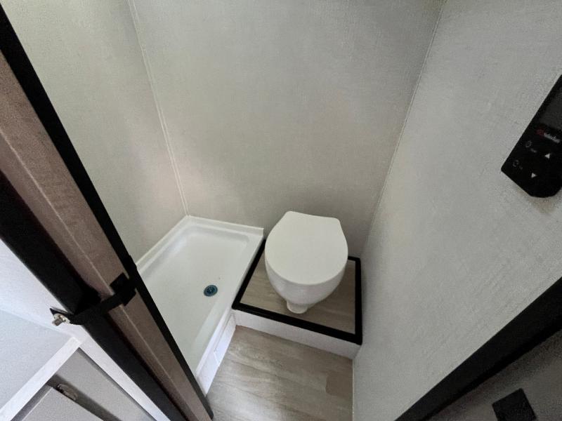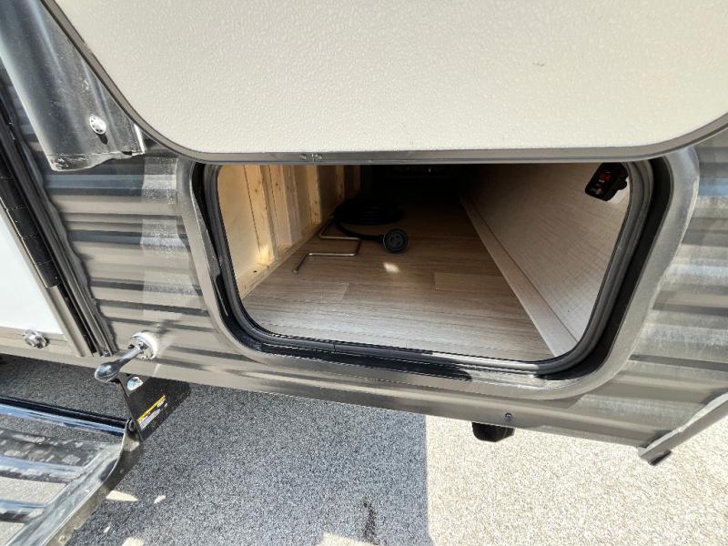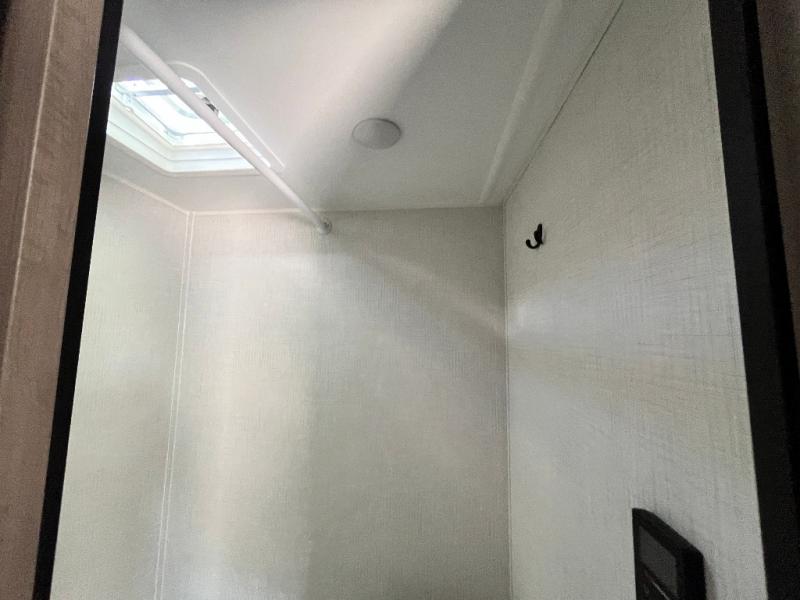 Your small crew will love camping in this lightweight travel trailer. There is a full-size bed up front with a folding bunk above plus a closet at the foot of the bed to keep your things out of the way. The two burner gas cooktop and microwave oven will let you make breakfast in the morning, and the folding table with two chairs provides a place to dine together. And a private bath with a shower and toilet lets you easily clean up after a day outdoors!