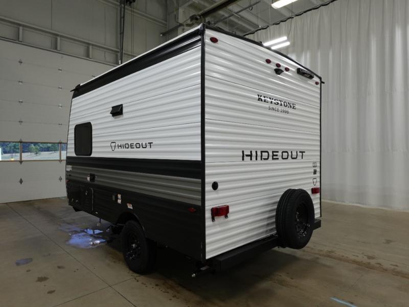 With any Hideout Mini travel trailer by Keystone, you will enjoy lightweight towing thanks to their single-axle! The AlphaPly TPO roof membrane is ultra durable, and the power awning will provide protection from the sun as you relax in your camp chairs outside. Each model includes blackout night shades, LED lighting, plus many more interior comforts. There is also a roof A/C and 20K BTU furnace to keep you comfortable, plus a tankless water heater for endless hot showers!