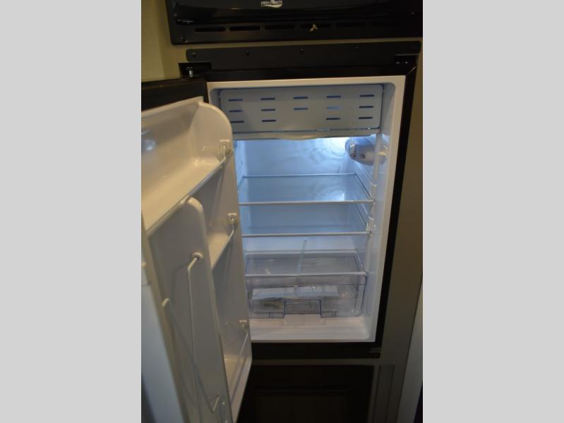 This lightweight travel trailer is perfect for three happy campers. You'll enjoy the front full-size bed, while your guest or little ones take the booth dinette when it's not being used to dine at. There is also a shelf above the bed to keep your things organized. A private bath includes a shower with a toilet so you can freshen up each day without having to leave your camper. You can make your meals on the two burner gas cooktop or in the microwave oven, then take your plate outdoors to eat under the 8' power awning!