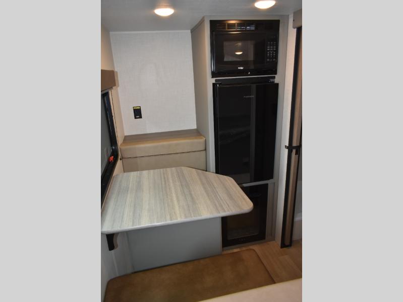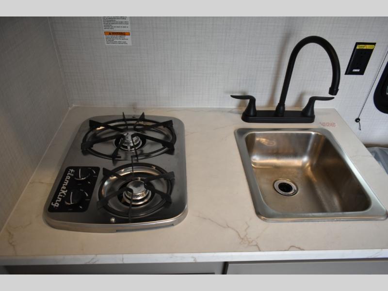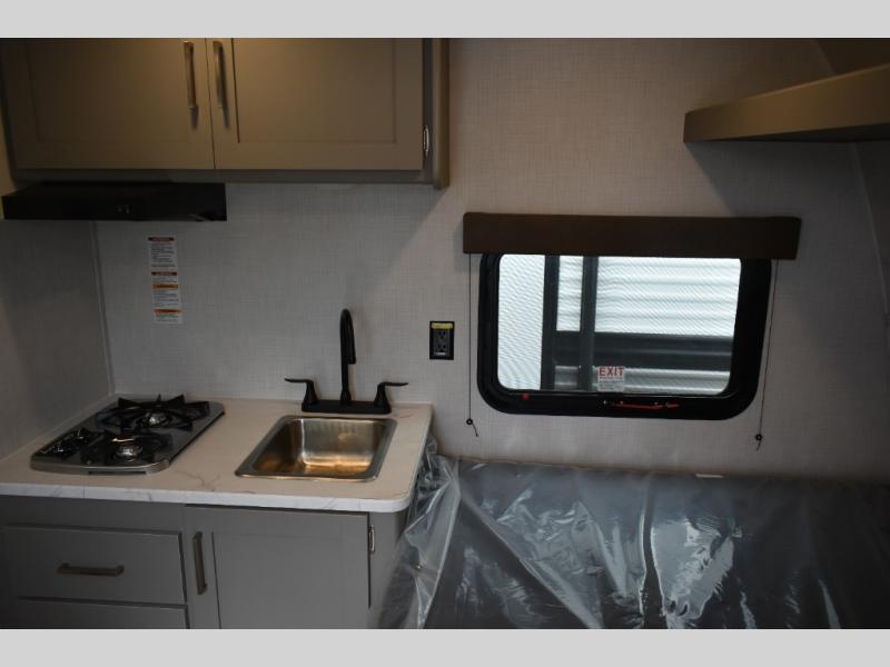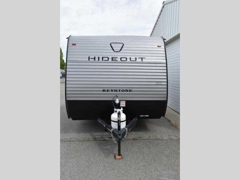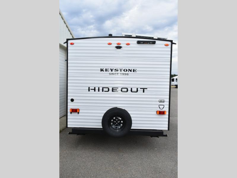 With any Hideout Mini travel trailer by Keystone, you will enjoy lightweight towing thanks to their single-axle! The AlphaPly TPO roof membrane is ultra durable, and the power awning will provide protection from the sun as you relax in your camp chairs outside. Each model includes blackout night shades, LED lighting, plus many more interior comforts. There is also a roof A/C and 20K BTU furnace to keep you comfortable, plus a tankless water heater for endless hot showers!