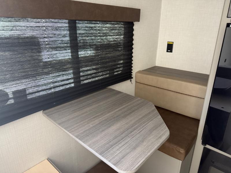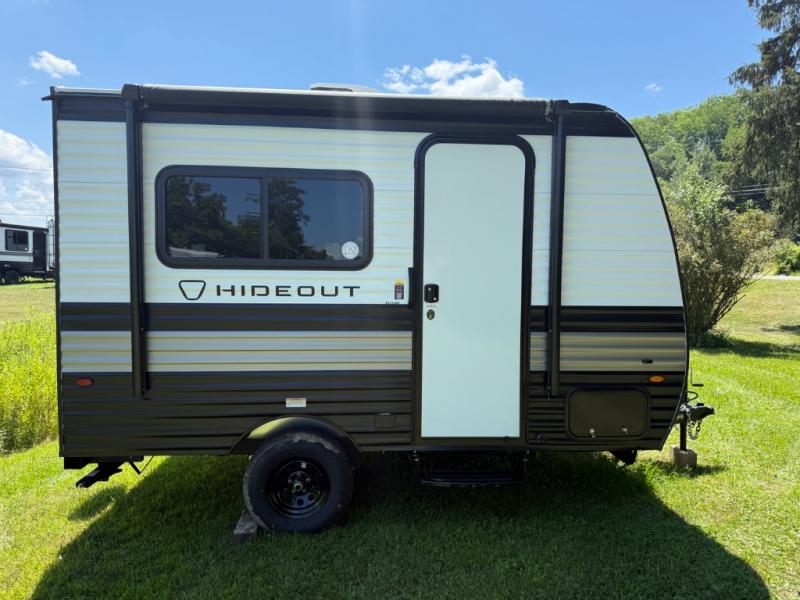 With any Hideout Mini travel trailer by Keystone, you will enjoy lightweight towing thanks to their single-axle! The AlphaPly TPO roof membrane is ultra durable, and the power awning will provide protection from the sun as you relax in your camp chairs outside. Each model includes blackout night shades, LED lighting, plus many more interior comforts. There is also a roof A/C and 20K BTU furnace to keep you comfortable, plus a tankless water heater for endless hot showers!