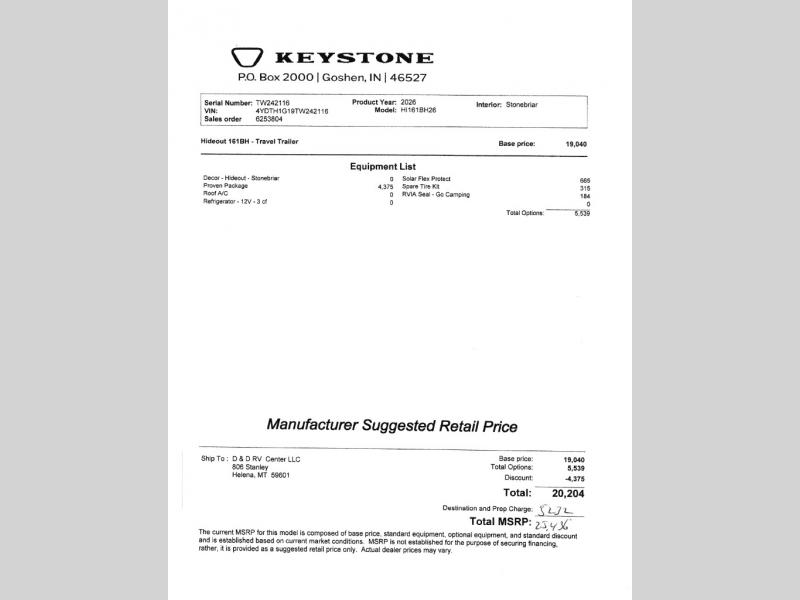 New 2026 Keystone RV Hideout Mini 161BH Travel Trailer