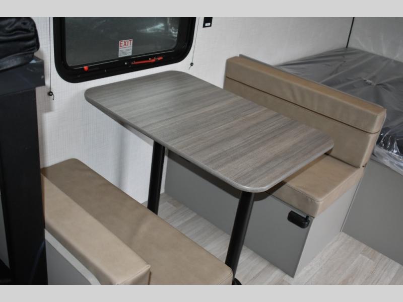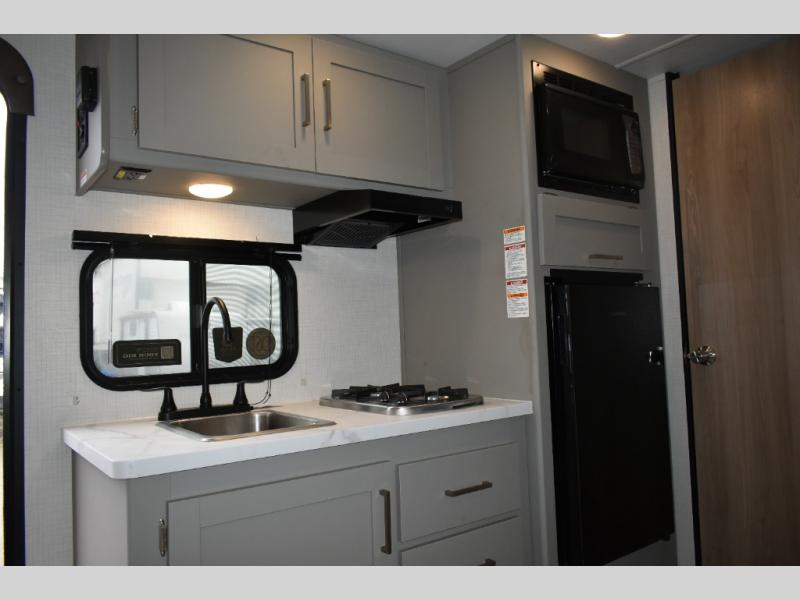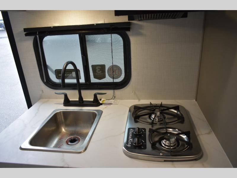 With any Hideout Mini travel trailer by Keystone, you will enjoy lightweight towing thanks to their single-axle! The AlphaPly TPO roof membrane is ultra durable, and the power awning will provide protection from the sun as you relax in your camp chairs outside. Each model includes blackout night shades, LED lighting, plus many more interior comforts. There is also a roof A/C and 20K BTU furnace to keep you comfortable, plus a tankless water heater for endless hot showers!