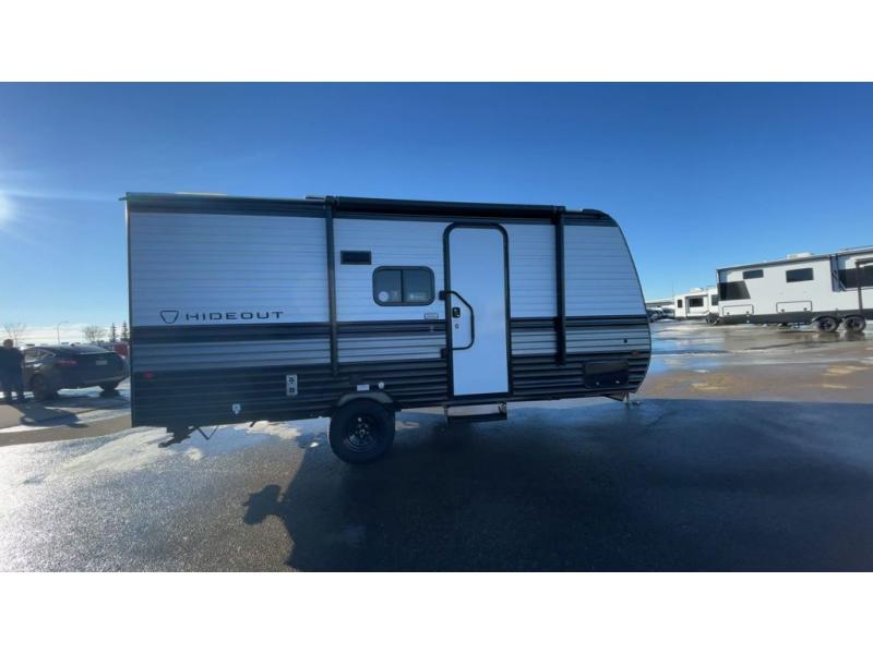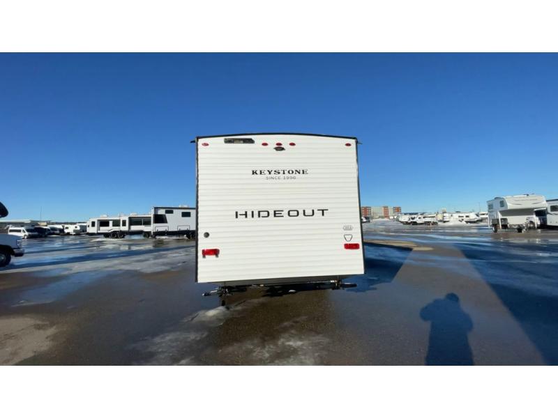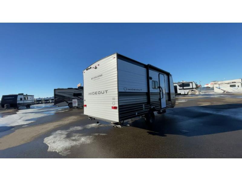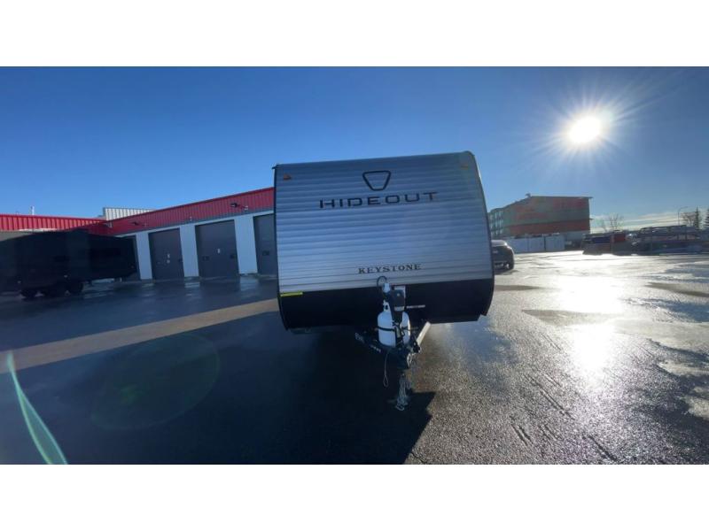 With any Hideout Mini travel trailer by Keystone, you will enjoy lightweight towing thanks to their single axle! The XL tinted safety glass windows are ultra durable, and the power awning will provide protection from the sun as you relax in your camp chairs outside. Each model includes blackout night shades, LED lighting, plus many more interior comforts. There is also a 20K BTU furnace to keep you comfortable, plus a tankless water heater for endless hot showers!