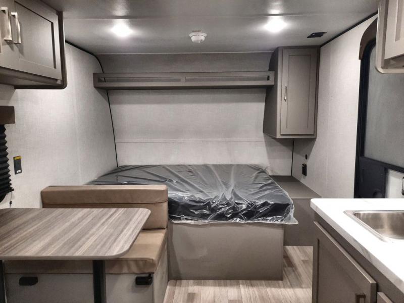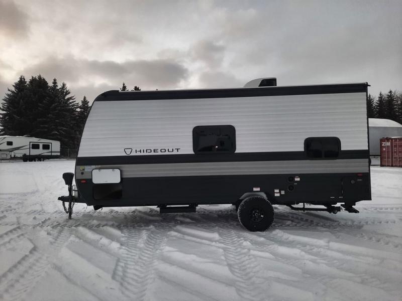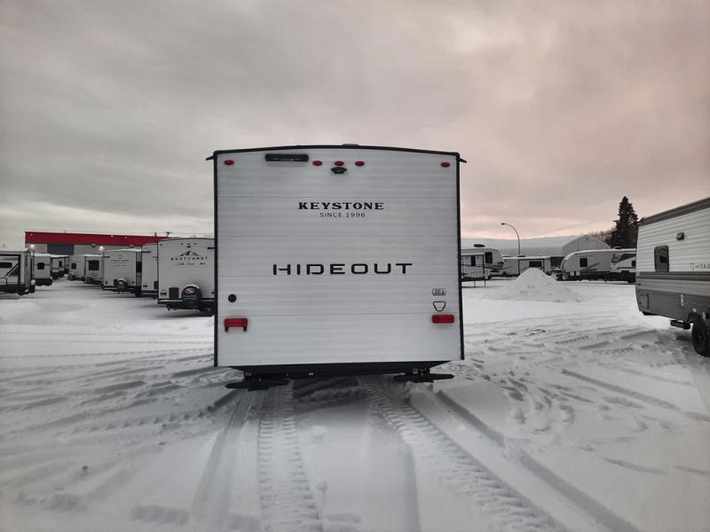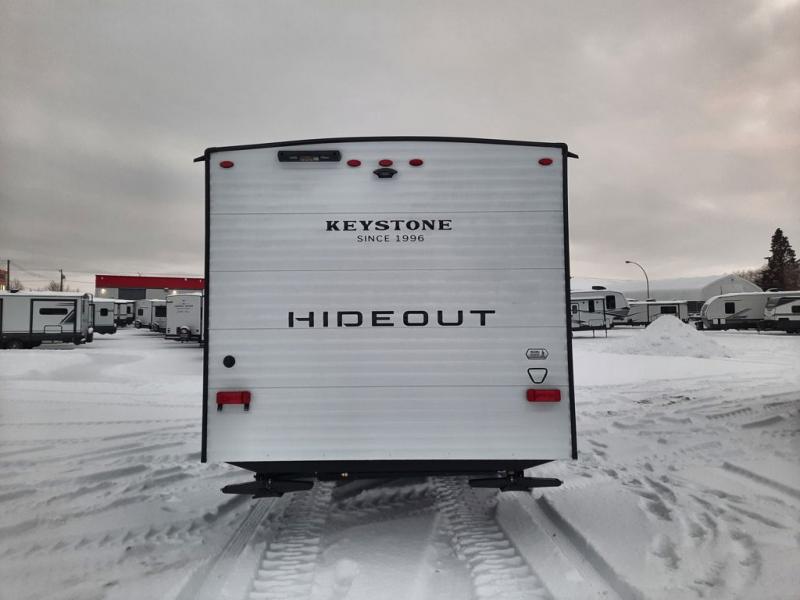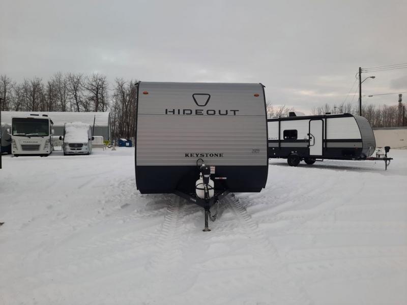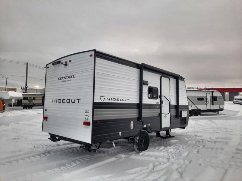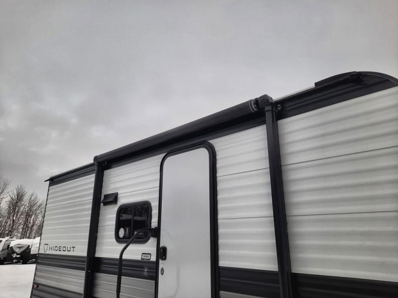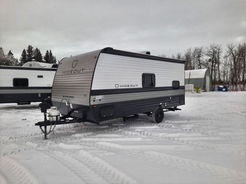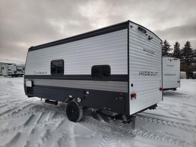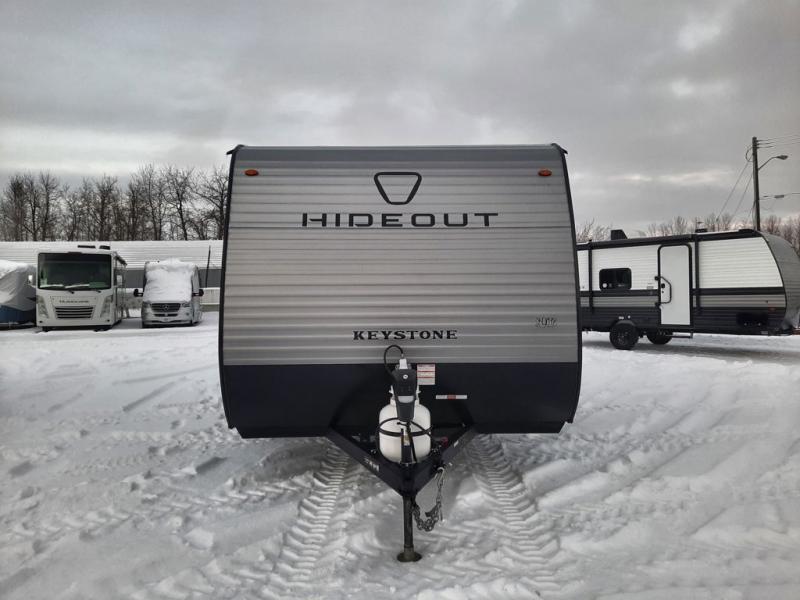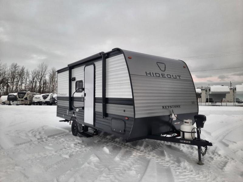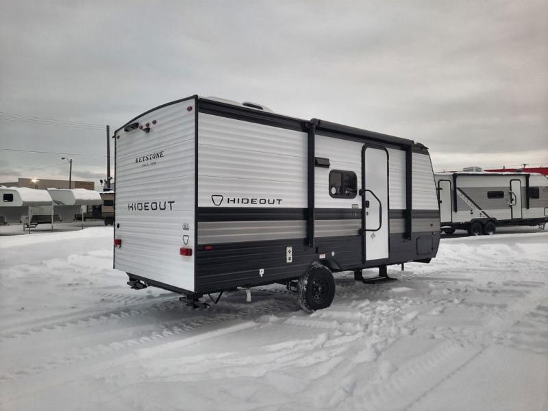 With any Hideout Mini travel trailer by Keystone, you will enjoy lightweight towing thanks to their single axle! The XL tinted safety glass windows are ultra durable, and the power awning will provide protection from the sun as you relax in your camp chairs outside. Each model includes blackout night shades, LED lighting, plus many more interior comforts. There is also a 20K BTU furnace to keep you comfortable, plus a tankless water heater for endless hot showers!