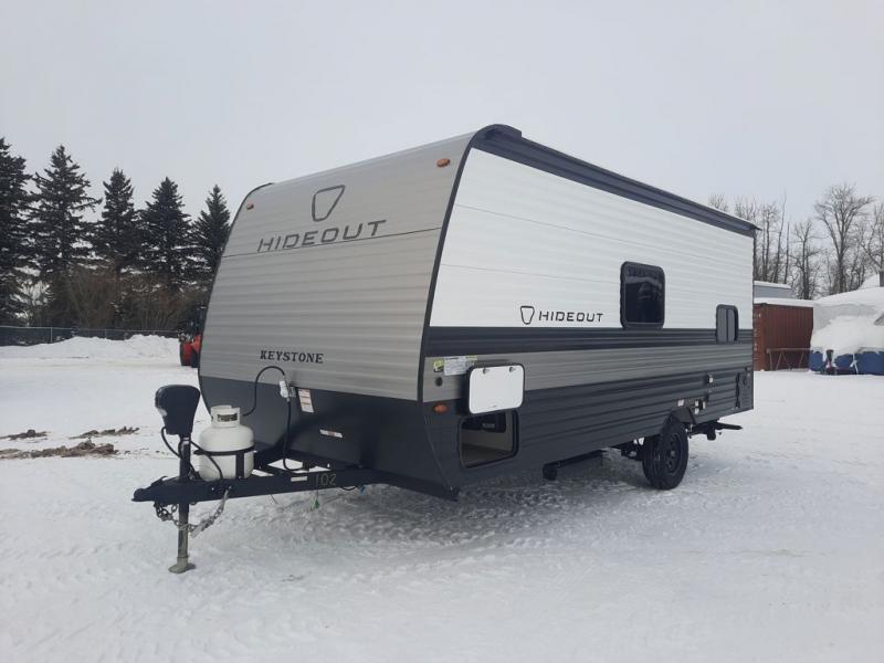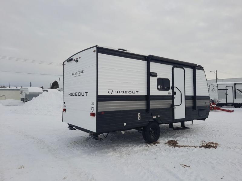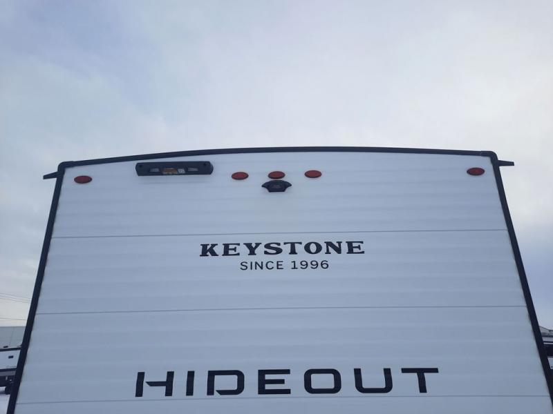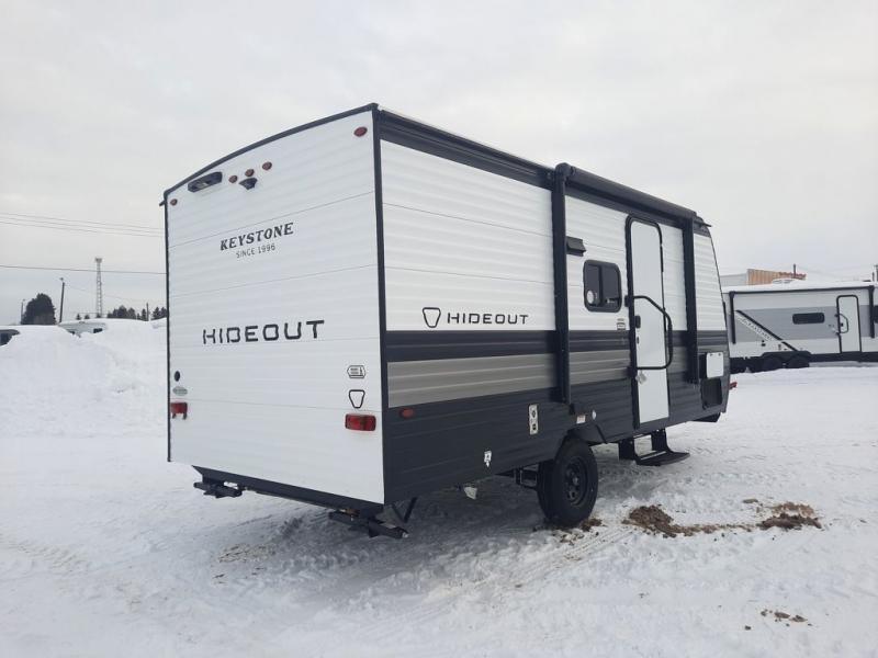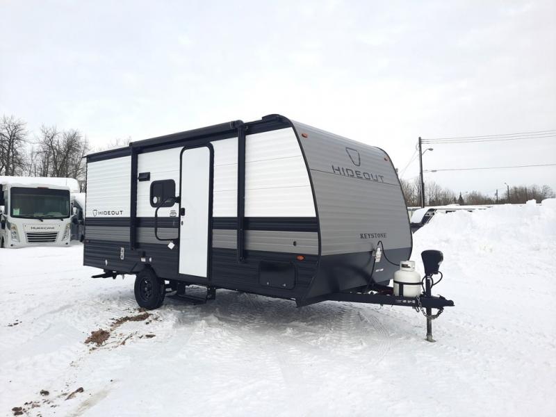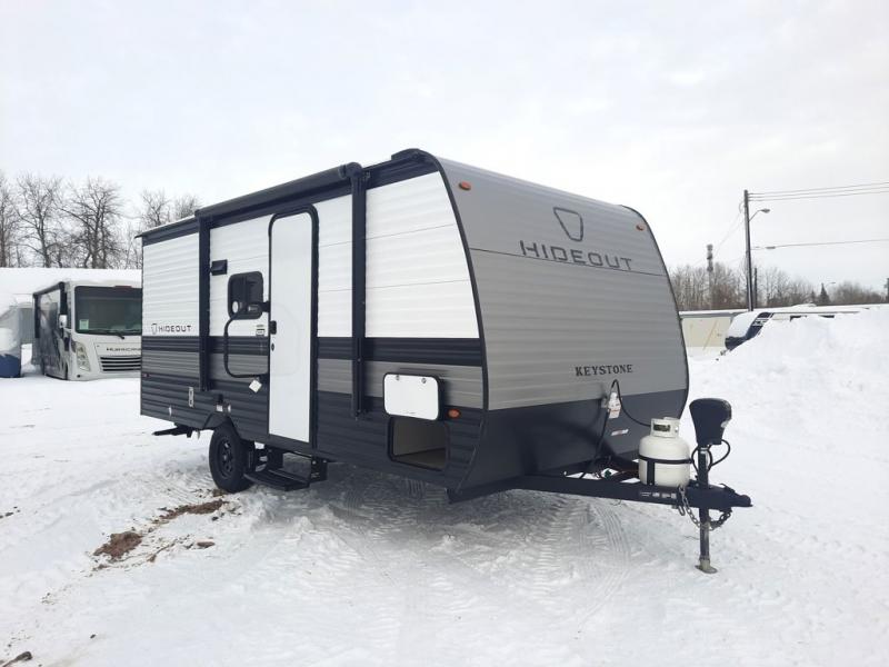 With any Hideout Mini travel trailer by Keystone, you will enjoy lightweight towing thanks to their single axle! The XL tinted safety glass windows are ultra durable, and the power awning will provide protection from the sun as you relax in your camp chairs outside. Each model includes blackout night shades, LED lighting, plus many more interior comforts. There is also a 20K BTU furnace to keep you comfortable, plus a tankless water heater for endless hot showers!