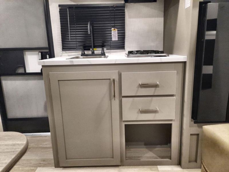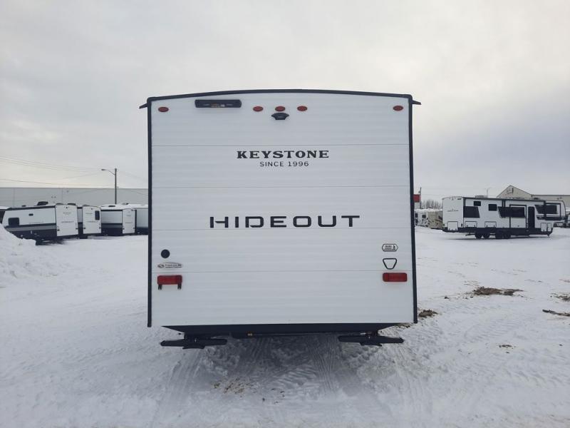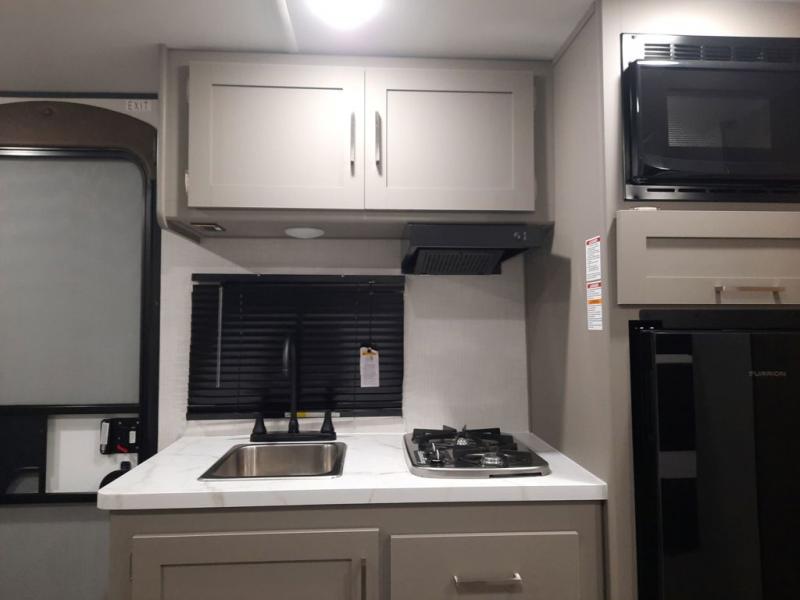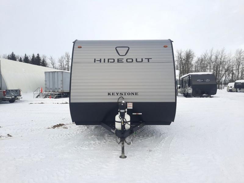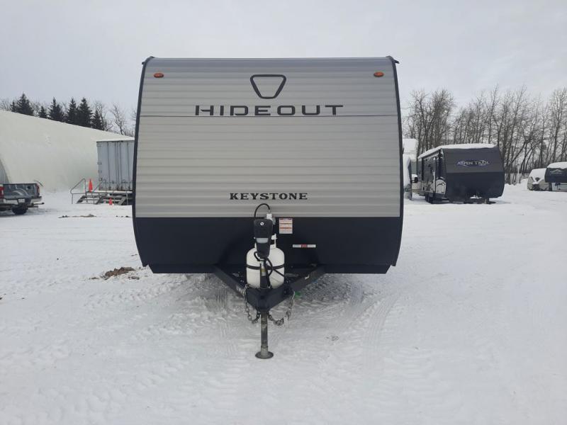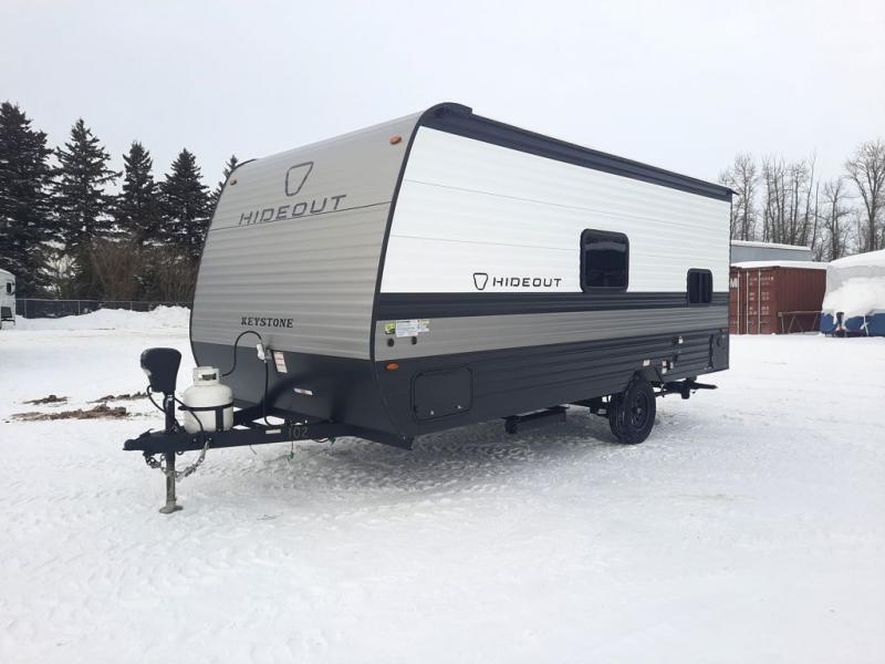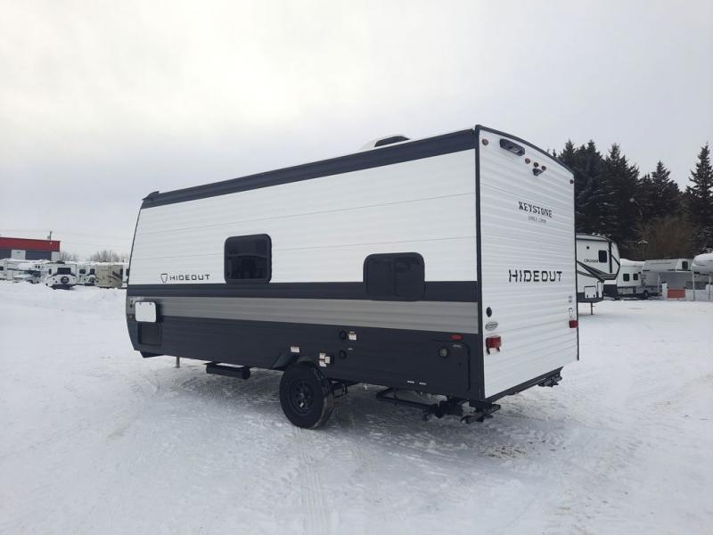 With any Hideout Mini travel trailer by Keystone, you will enjoy lightweight towing thanks to their single axle! The XL tinted safety glass windows are ultra durable, and the power awning will provide protection from the sun as you relax in your camp chairs outside. Each model includes blackout night shades, LED lighting, plus many more interior comforts. There is also a 20K BTU furnace to keep you comfortable, plus a tankless water heater for endless hot showers!
