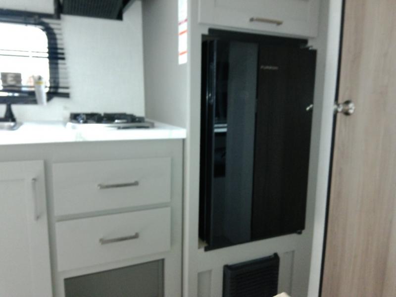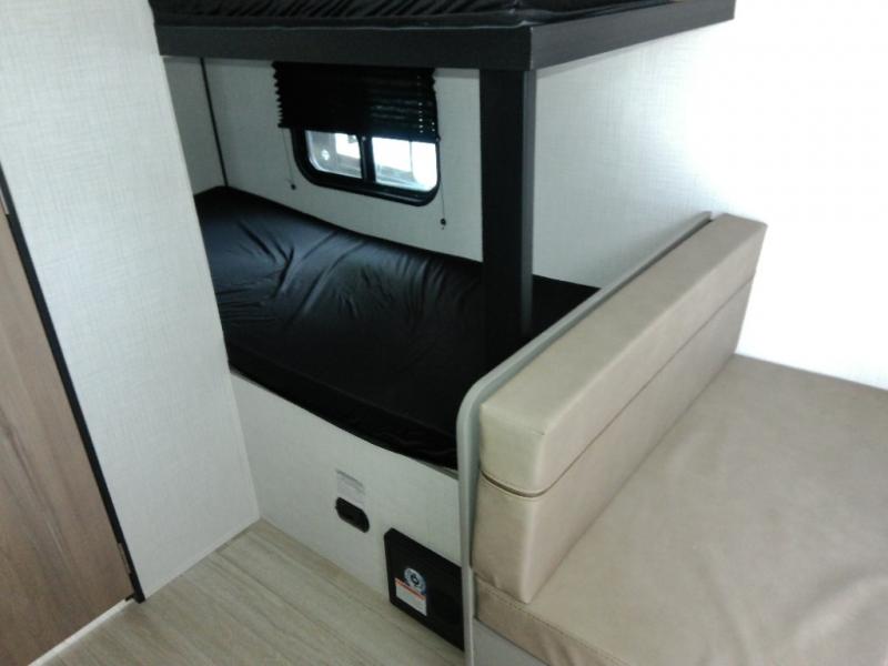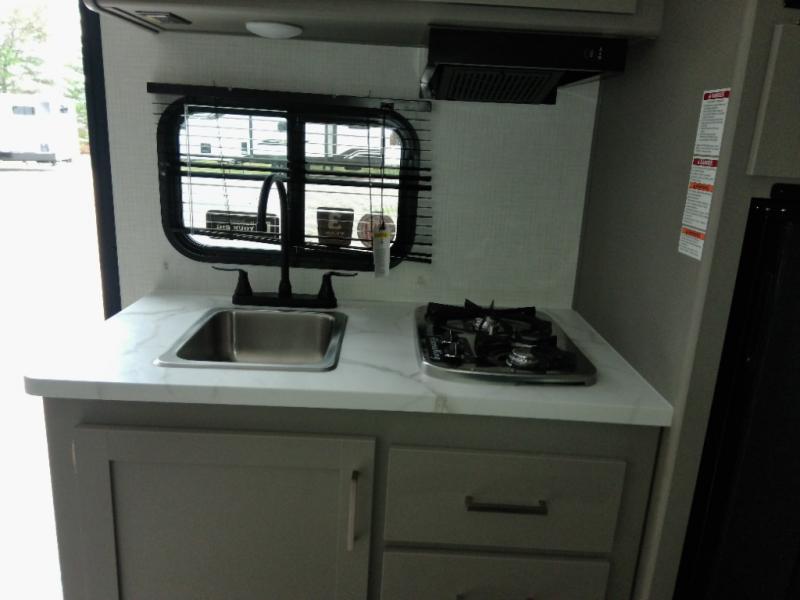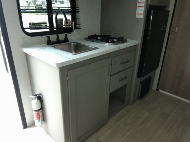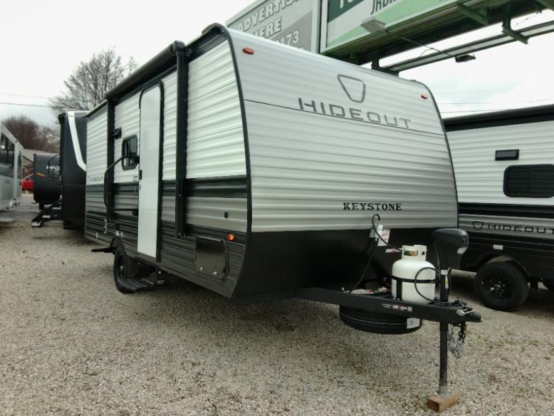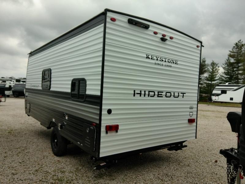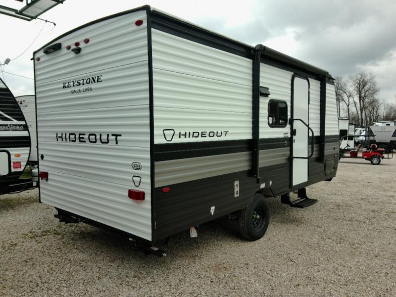 With any Hideout Mini travel trailer by Keystone, you will enjoy lightweight towing thanks to their single axle! The XL tinted safety glass windows are ultra durable, and the power awning will provide protection from the sun as you relax in your camp chairs outside. Each model includes blackout night shades, LED lighting, plus many more interior comforts. There is also a 20K BTU furnace to keep you comfortable, plus a tankless water heater for endless hot showers!