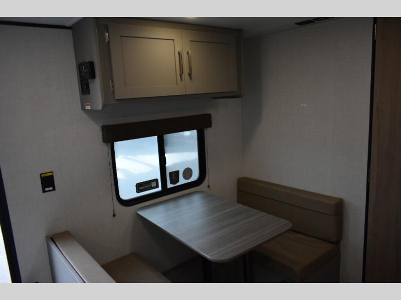 It's time to enjoy the great outdoors with family and friends at the campgrounds you like to meet everyone at! This trailer will allow three to four to camp comfortability with amenities such as a two burner cooktop, a 3.3 cu. ft. refrigerator, and a spacious rear full bathroom. The booth dinette offers a place to dine, read a book and even house an overnight guest. This model also includes a walk-around queen bed that will make your space feel a little more like home!