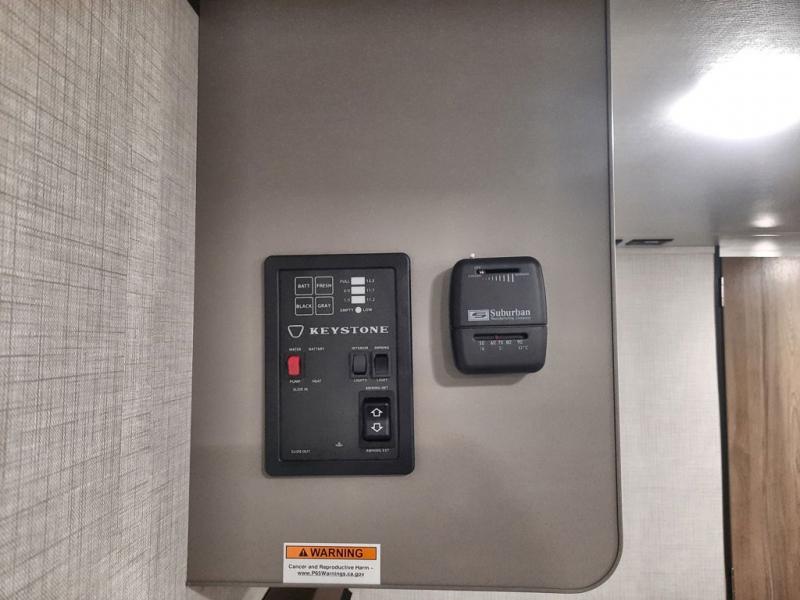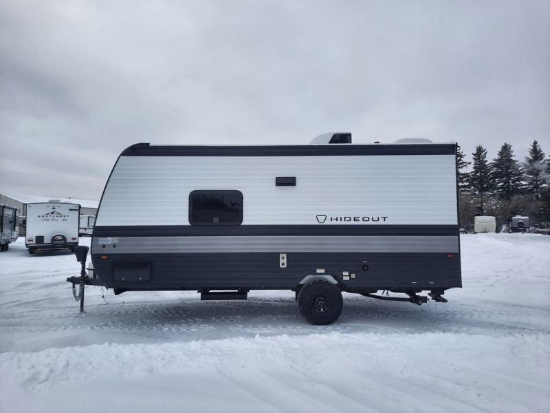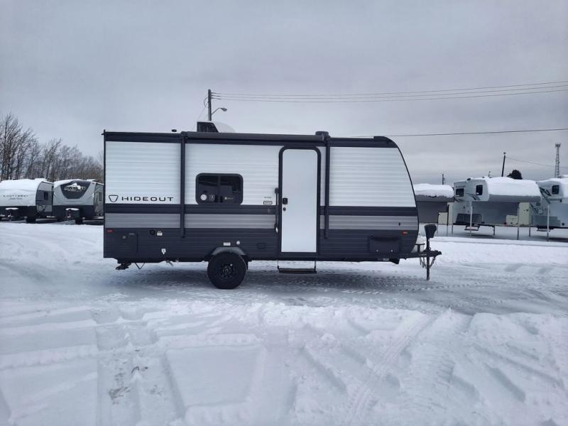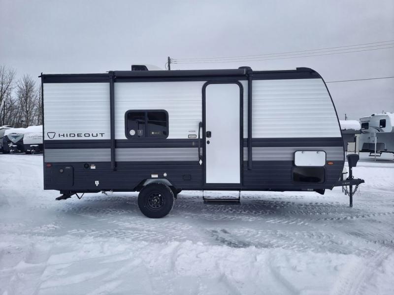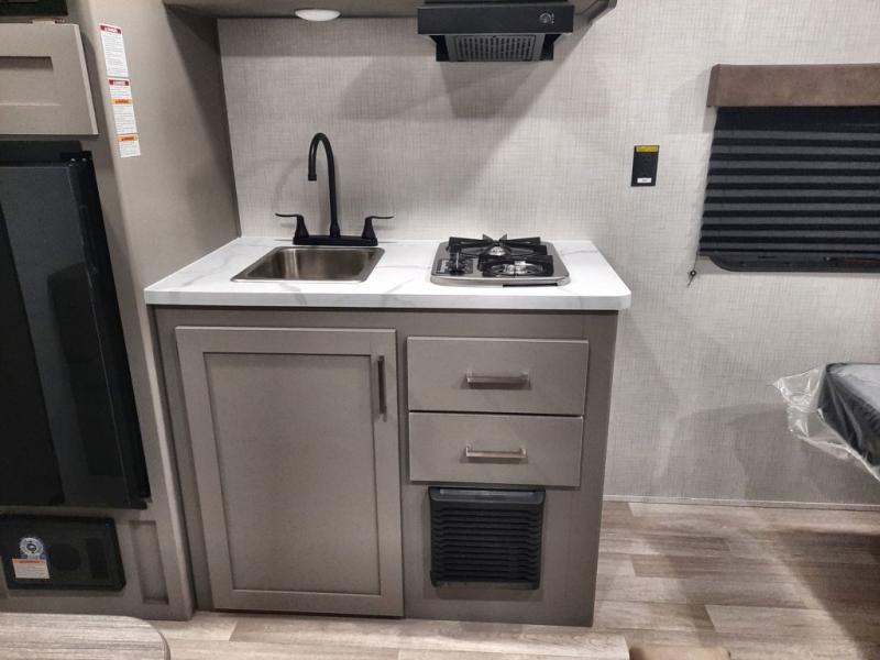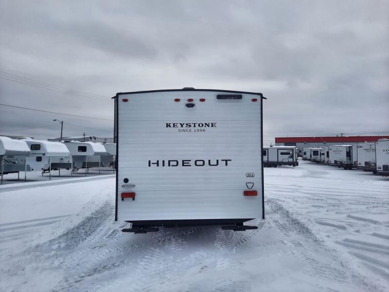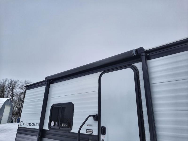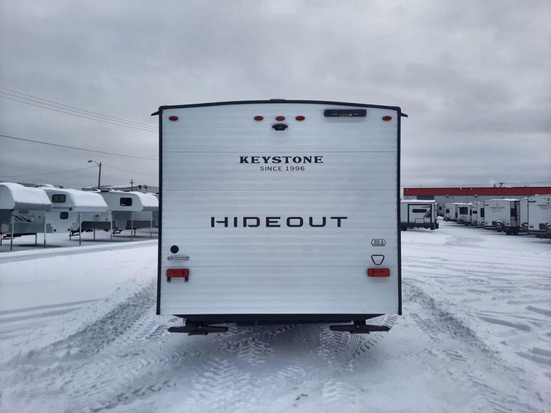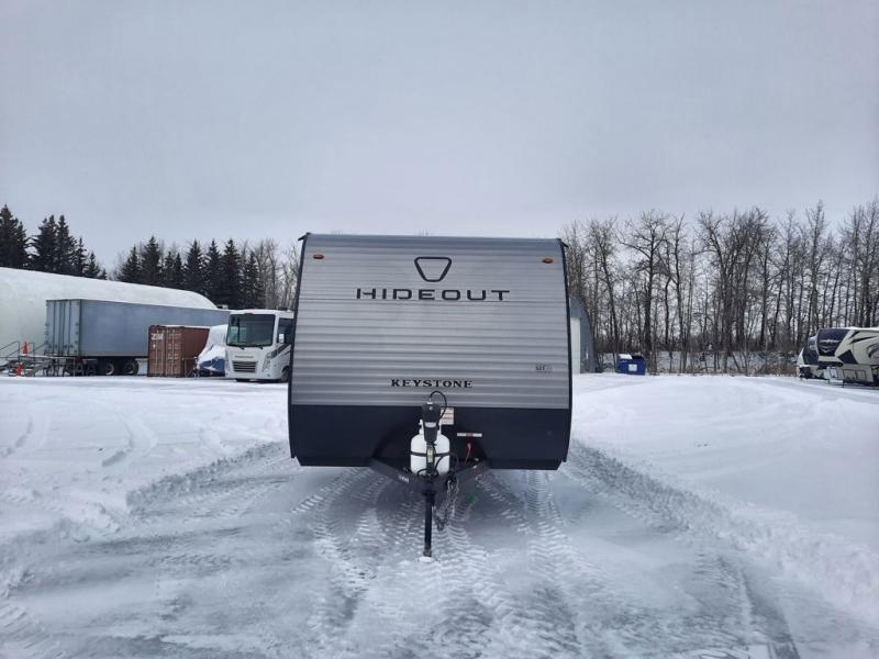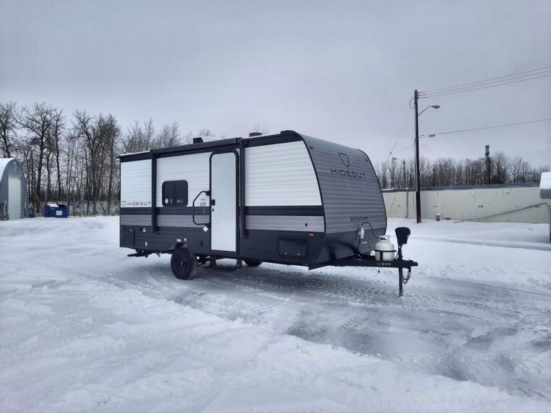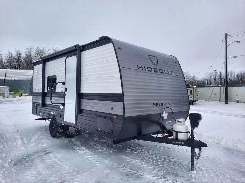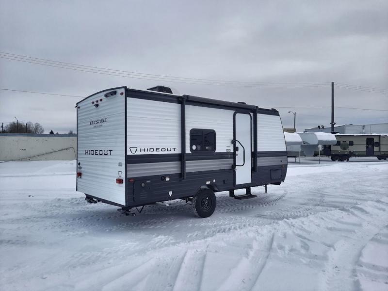 With any Hideout Mini travel trailer by Keystone, you will enjoy lightweight towing thanks to their single axle! The XL tinted safety glass windows are ultra durable, and the power awning will provide protection from the sun as you relax in your camp chairs outside. Each model includes blackout night shades, LED lighting, plus many more interior comforts. There is also a 20K BTU furnace to keep you comfortable, plus a tankless water heater for endless hot showers!