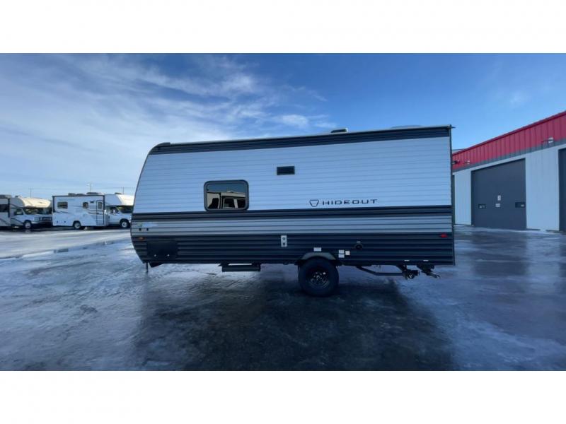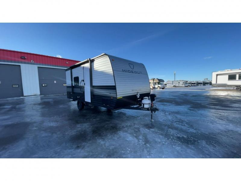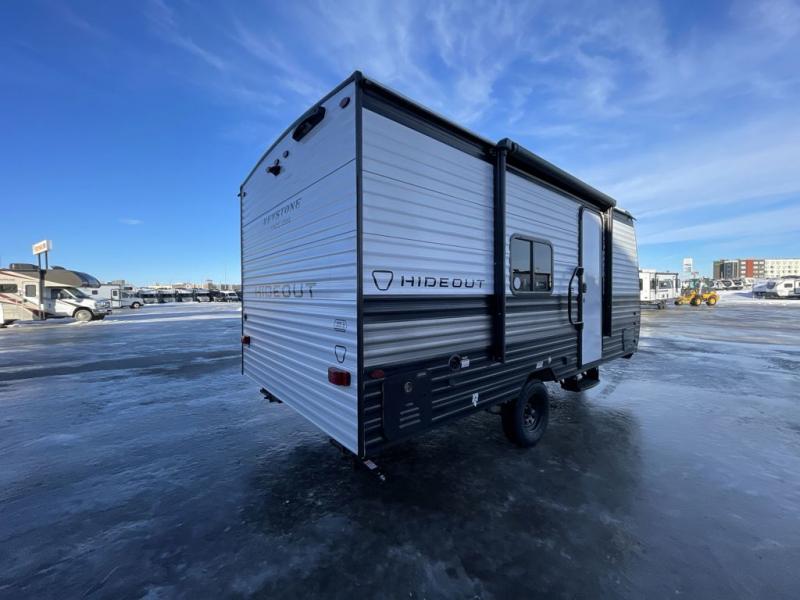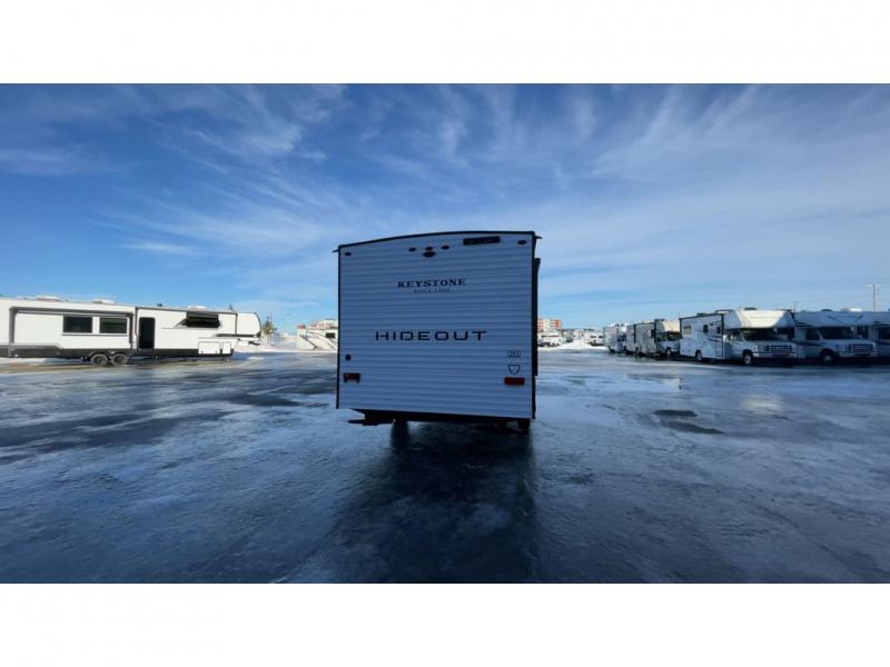 With any Hideout Mini travel trailer by Keystone, you will enjoy lightweight towing thanks to their single axle! The XL tinted safety glass windows are ultra durable, and the power awning will provide protection from the sun as you relax in your camp chairs outside. Each model includes blackout night shades, LED lighting, plus many more interior comforts. There is also a 20K BTU furnace to keep you comfortable, plus a tankless water heater for endless hot showers!