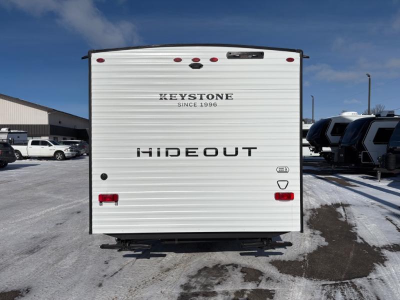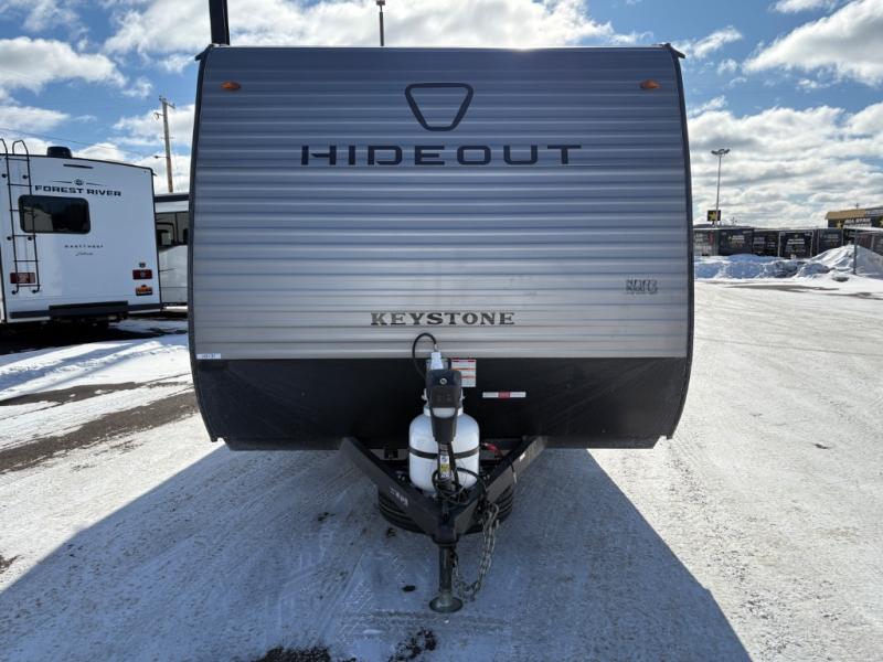 With any Hideout Mini travel trailer by Keystone, you will enjoy lightweight towing thanks to their single axle! The XL tinted safety glass windows are ultra durable, and the power awning will provide protection from the sun as you relax in your camp chairs outside. Each model includes blackout night shades, LED lighting, plus many more interior comforts. There is also a 20K BTU furnace to keep you comfortable, plus a tankless water heater for endless hot showers!