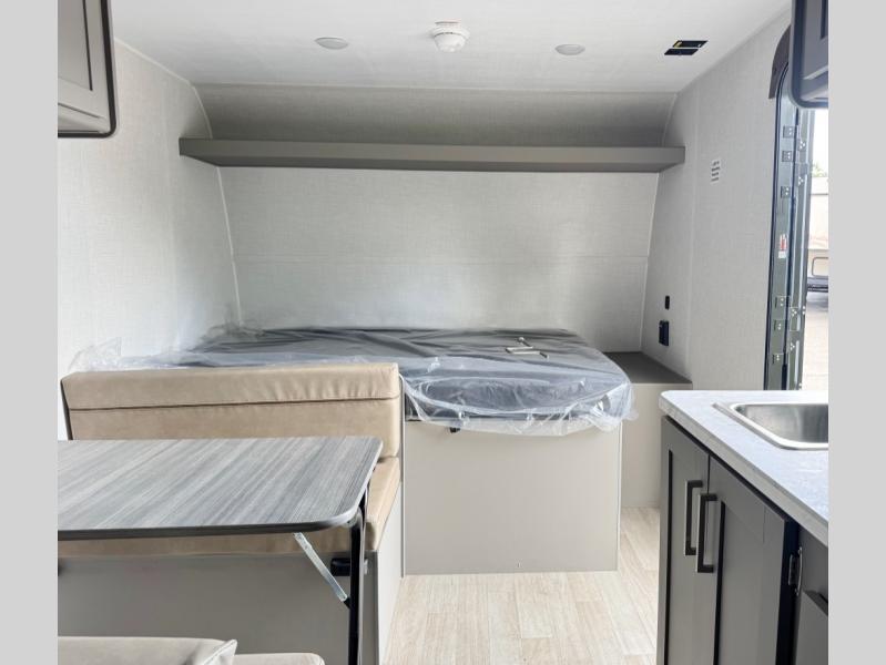 With any Hideout Mini travel trailer by Keystone, you will enjoy lightweight towing thanks to their single-axle! The AlphaPly TPO roof membrane is ultra durable, and the power awning will provide protection from the sun as you relax in your camp chairs outside. Each model includes blackout night shades, LED lighting, plus many more interior comforts. There is also a roof A/C and 20K BTU furnace to keep you comfortable, plus a tankless water heater for endless hot showers!