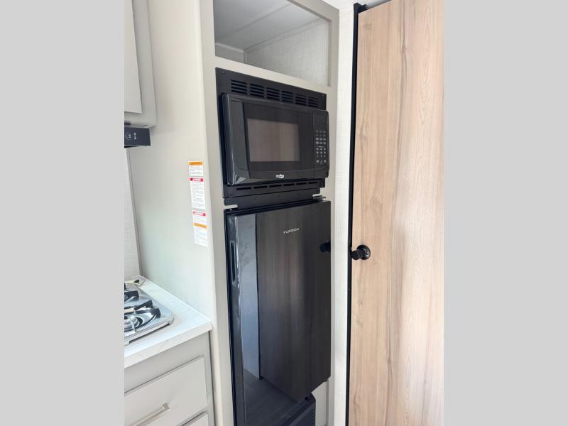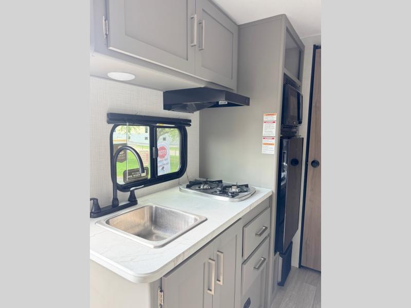 With any Hideout Mini travel trailer by Keystone, you will enjoy lightweight towing thanks to their single-axle! The AlphaPly TPO roof membrane is ultra durable, and the power awning will provide protection from the sun as you relax in your camp chairs outside. Each model includes blackout night shades, LED lighting, plus many more interior comforts. There is also a roof A/C and 20K BTU furnace to keep you comfortable, plus a tankless water heater for endless hot showers!