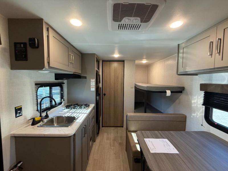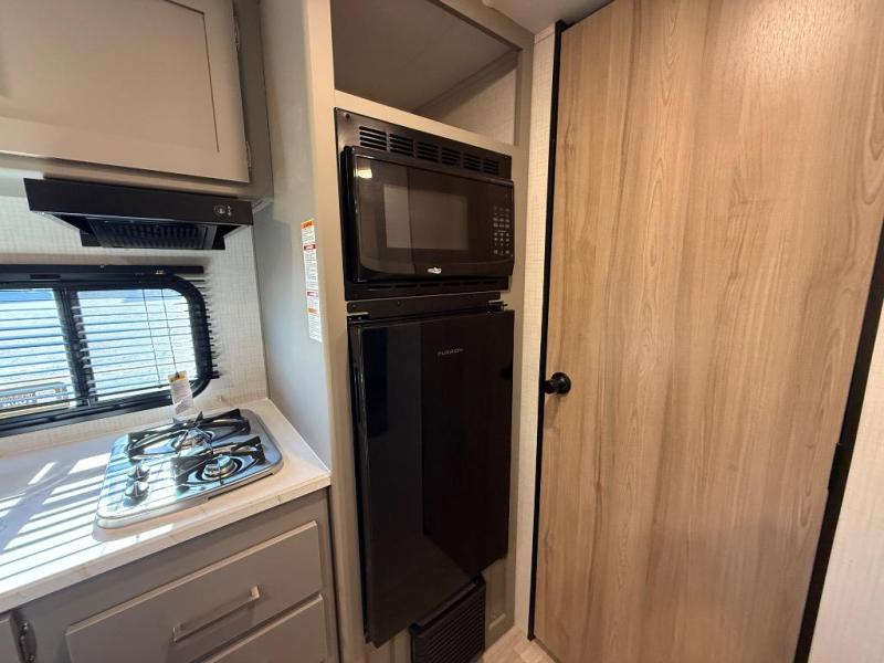 With any Hideout Mini travel trailer by Keystone, you will enjoy lightweight towing thanks to their single-axle! The AlphaPly TPO roof membrane is ultra durable, and the power awning will provide protection from the sun as you relax in your camp chairs outside. Each model includes blackout night shades, LED lighting, plus many more interior comforts. There is also a roof A/C and 20K BTU furnace to keep you comfortable, plus a tankless water heater for endless hot showers!
