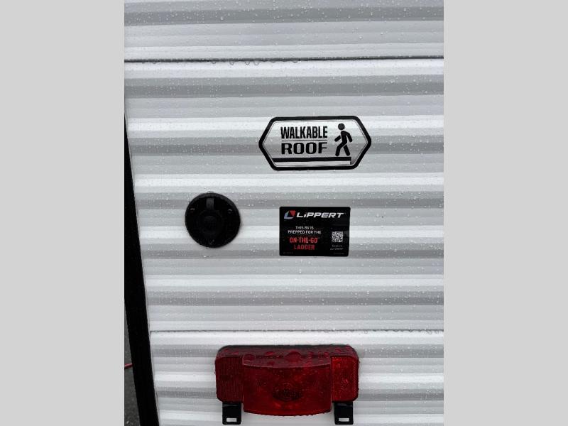 Step Inside this trailer where you can dine and relax on the slide out booth dinette which offers storage drawers below for your things. Everyone can take turns getting cleaned up in the full bathroom before falling asleep on the bunks, the queen-size bed or the booth dinette. The chef of your group will have a two burner cooktop to prepare meals and a 7.7 cu. ft. refrigerator for food storage. And the 10' power awning offers an outdoor living area protected from the elements once you add your camping chairs taken from the pass-through compartment.