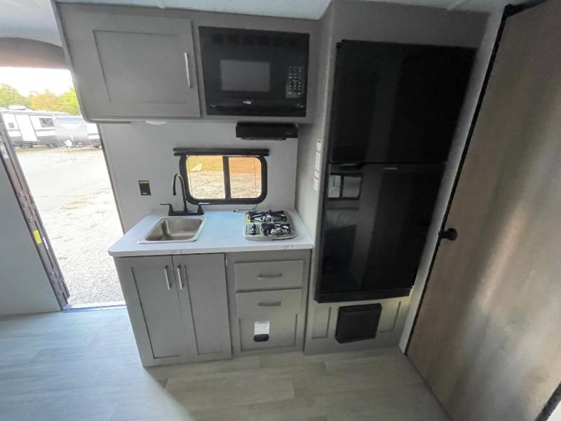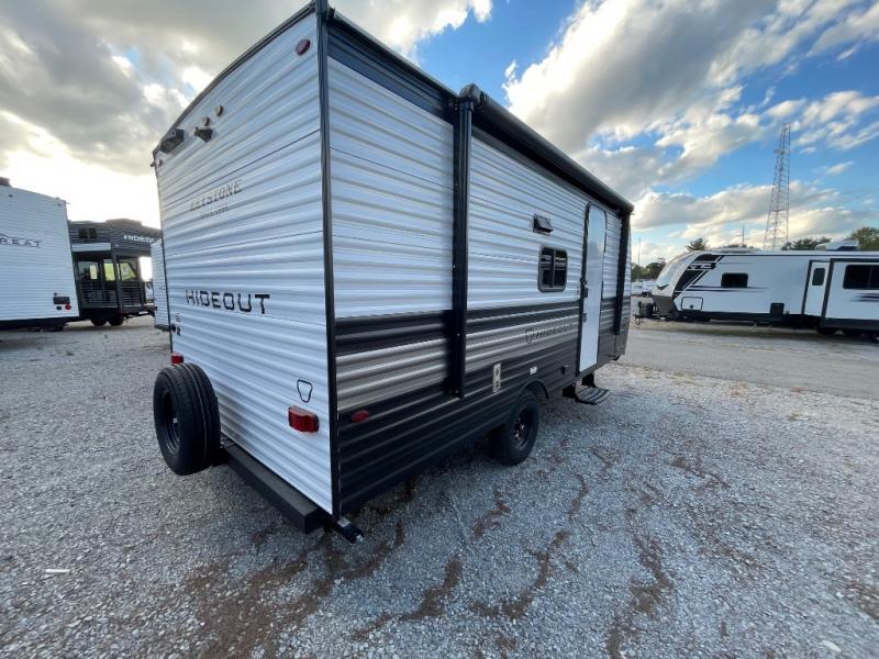 With any Hideout Mini travel trailer by Keystone, you will enjoy lightweight towing thanks to their single-axle! The AlphaPly TPO roof membrane is ultra durable, and the power awning will provide protection from the sun as you relax in your camp chairs outside. Each model includes blackout night shades, LED lighting, plus many more interior comforts. There is also a roof A/C and 20K BTU furnace to keep you comfortable, plus a tankless water heater for endless hot showers!