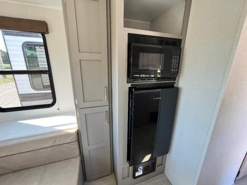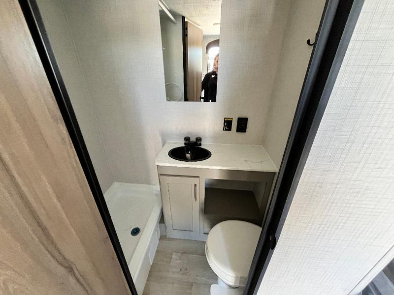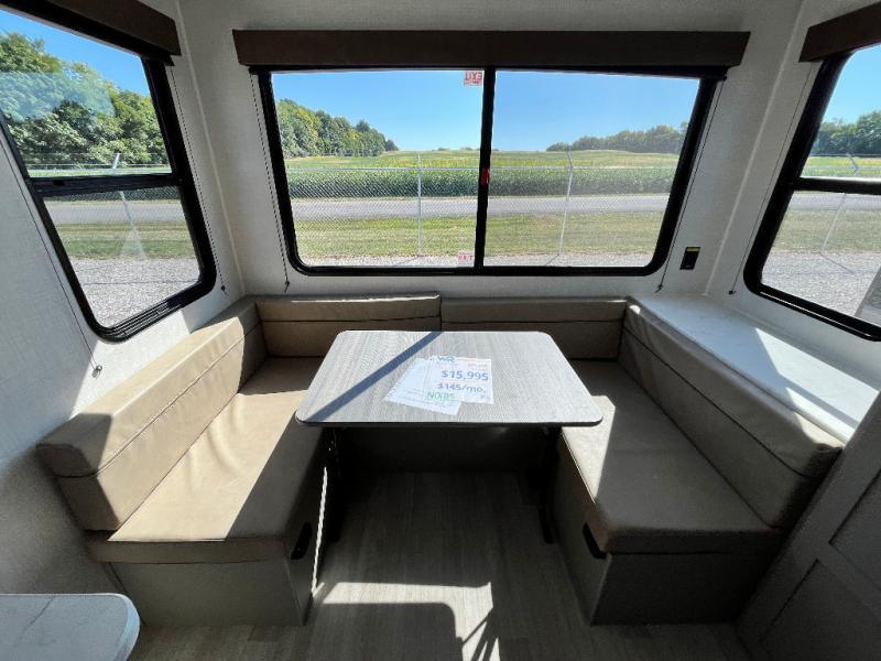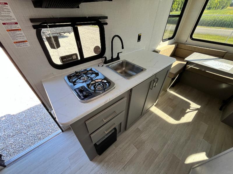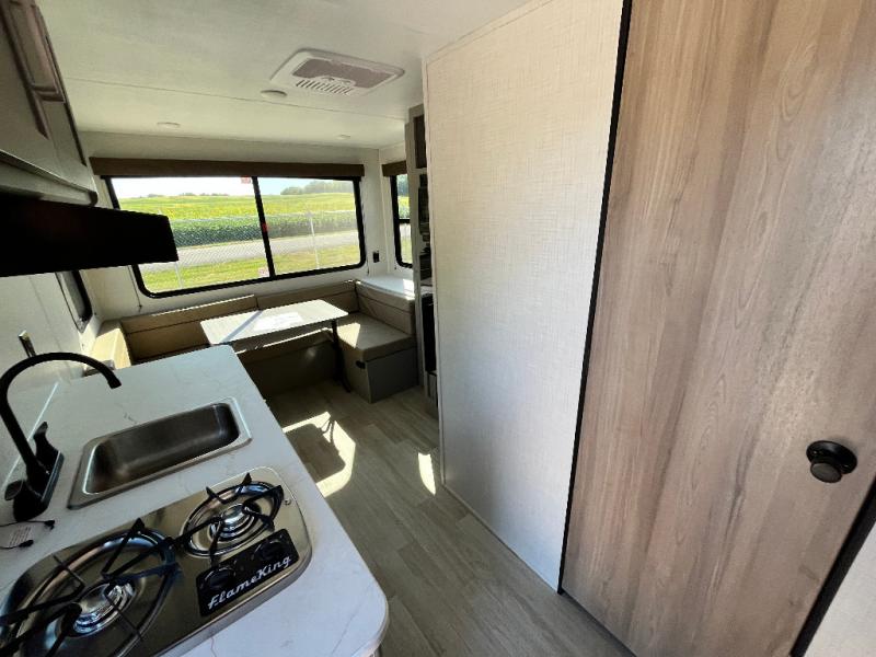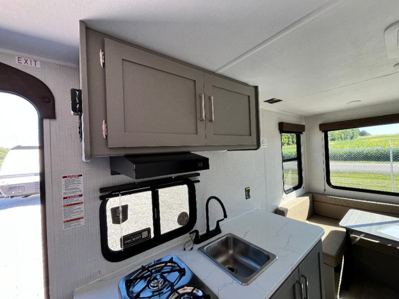 With any Hideout Mini travel trailer by Keystone, you will enjoy lightweight towing thanks to their single-axle! The AlphaPly TPO roof membrane is ultra durable, and the power awning will provide protection from the sun as you relax in your camp chairs outside. Each model includes blackout night shades, LED lighting, plus many more interior comforts. There is also a roof A/C and 20K BTU furnace to keep you comfortable, plus a tankless water heater for endless hot showers!