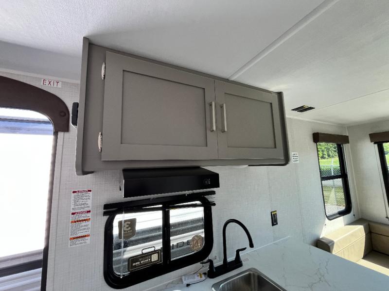 With any Hideout Mini travel trailer by Keystone, you will enjoy lightweight towing thanks to their single-axle! The AlphaPly TPO roof membrane is ultra durable, and the power awning will provide protection from the sun as you relax in your camp chairs outside. Each model includes blackout night shades, LED lighting, plus many more interior comforts. There is also a roof A/C and 20K BTU furnace to keep you comfortable, plus a tankless water heater for endless hot showers!