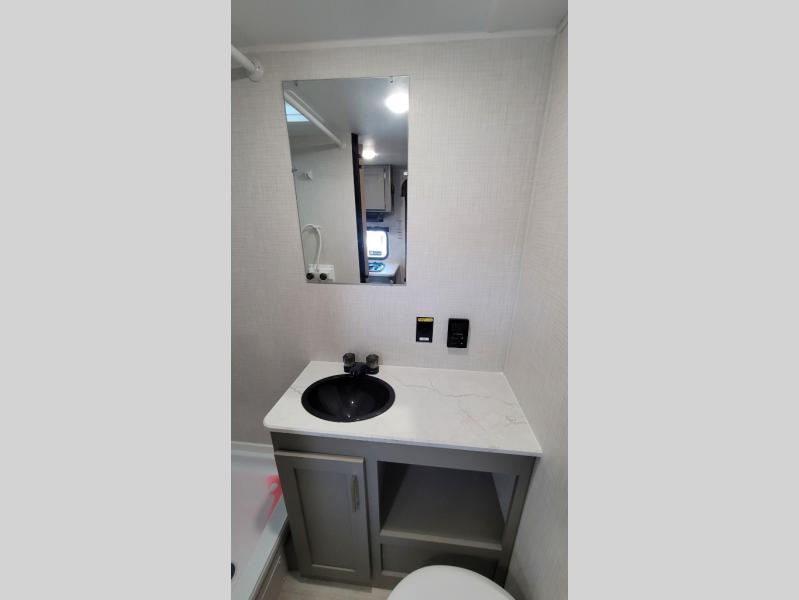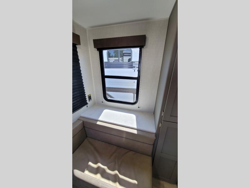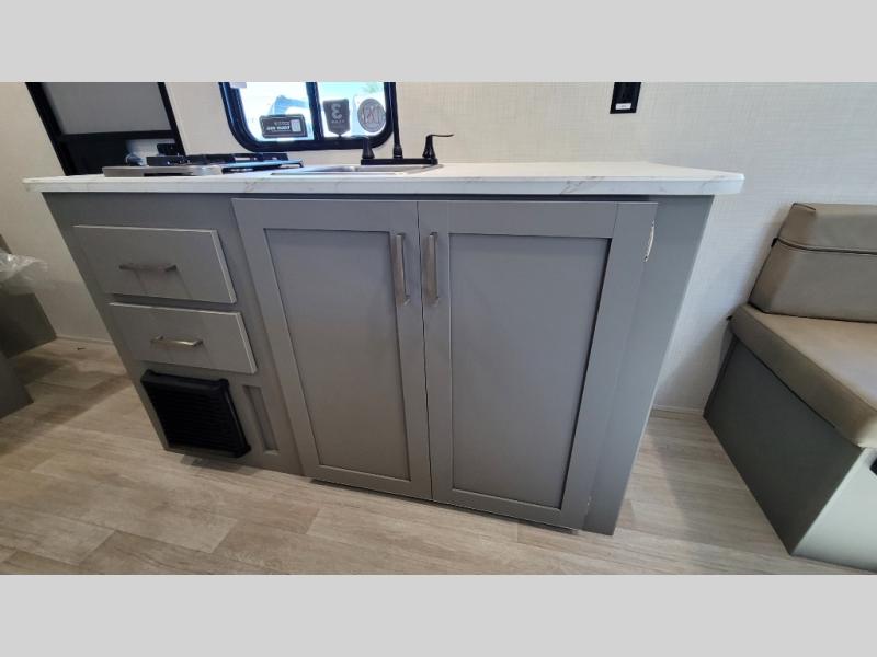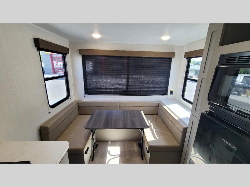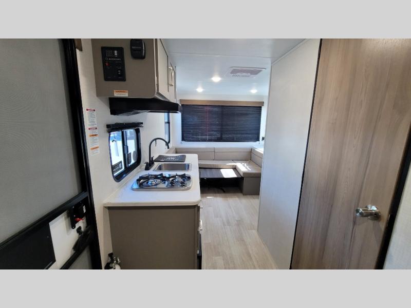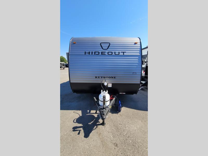 With any Hideout Mini travel trailer by Keystone, you will enjoy lightweight towing thanks to their single-axle! The AlphaPly TPO roof membrane is ultra durable, and the power awning will provide protection from the sun as you relax in your camp chairs outside. Each model includes blackout night shades, LED lighting, plus many more interior comforts. There is also a roof A/C and 20K BTU furnace to keep you comfortable, plus a tankless water heater for endless hot showers!