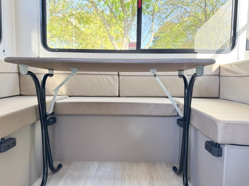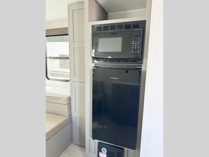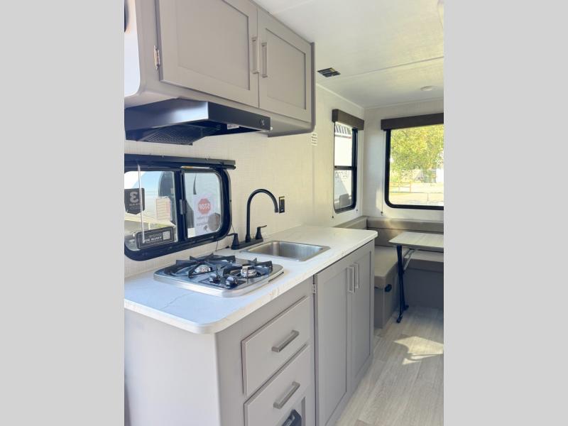 With any Hideout Mini travel trailer by Keystone, you will enjoy lightweight towing thanks to their single-axle! The AlphaPly TPO roof membrane is ultra durable, and the power awning will provide protection from the sun as you relax in your camp chairs outside. Each model includes blackout night shades, LED lighting, plus many more interior comforts. There is also a roof A/C and 20K BTU furnace to keep you comfortable, plus a tankless water heater for endless hot showers!