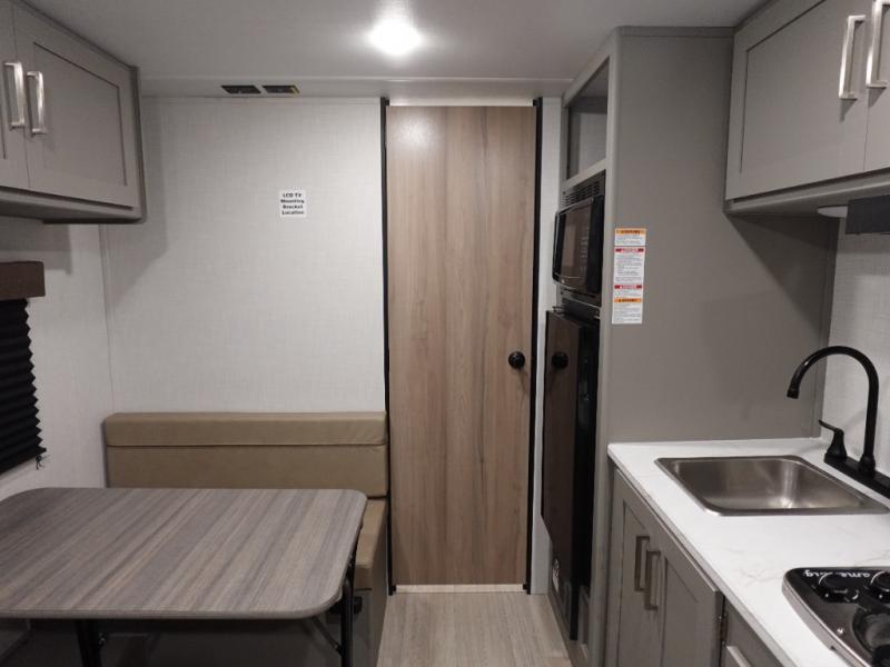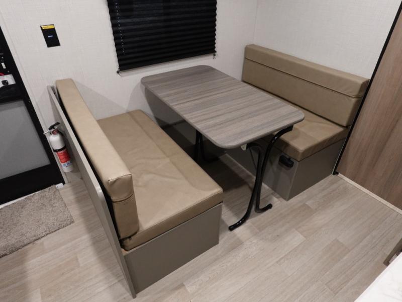 It's time to enjoy the great outdoors with family and friends at the campgrounds you like to meet everyone at! This trailer will allow three to four to camp comfortability with amenities such as a two burner cooktop, a 3.3 cu. ft. refrigerator, and a spacious rear full bathroom. The booth dinette offers a place to dine, read a book and even house an overnight guest. This model also includes a walk-around queen bed that will make your space feel a little more like home!