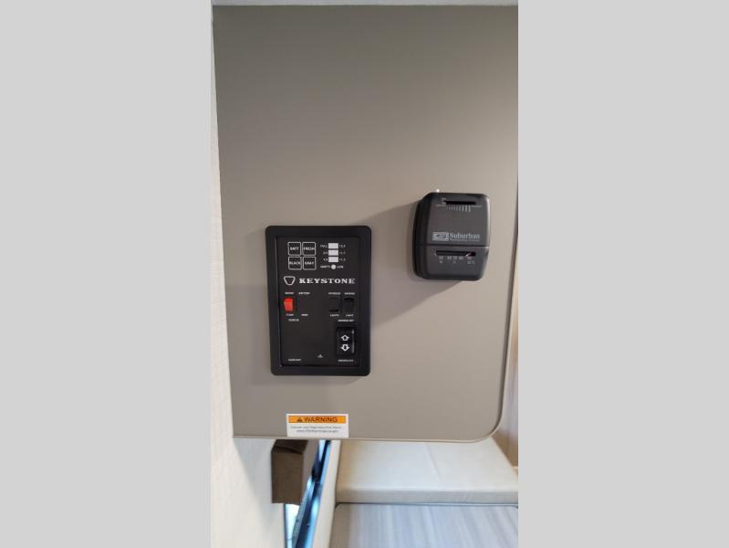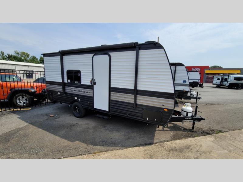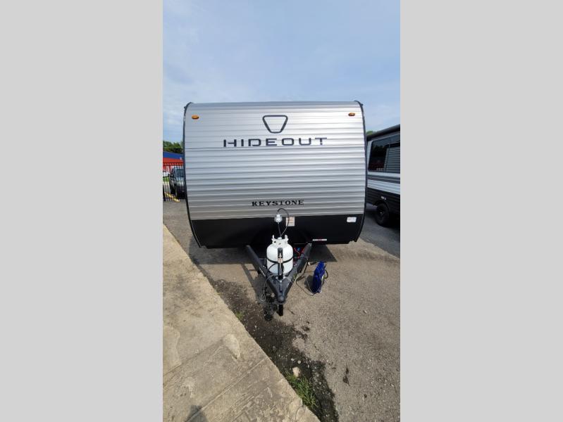 With any Hideout Mini travel trailer by Keystone, you will enjoy lightweight towing thanks to their single-axle! The AlphaPly TPO roof membrane is ultra durable, and the power awning will provide protection from the sun as you relax in your camp chairs outside. Each model includes blackout night shades, LED lighting, plus many more interior comforts. There is also a roof A/C and 20K BTU furnace to keep you comfortable, plus a tankless water heater for endless hot showers!