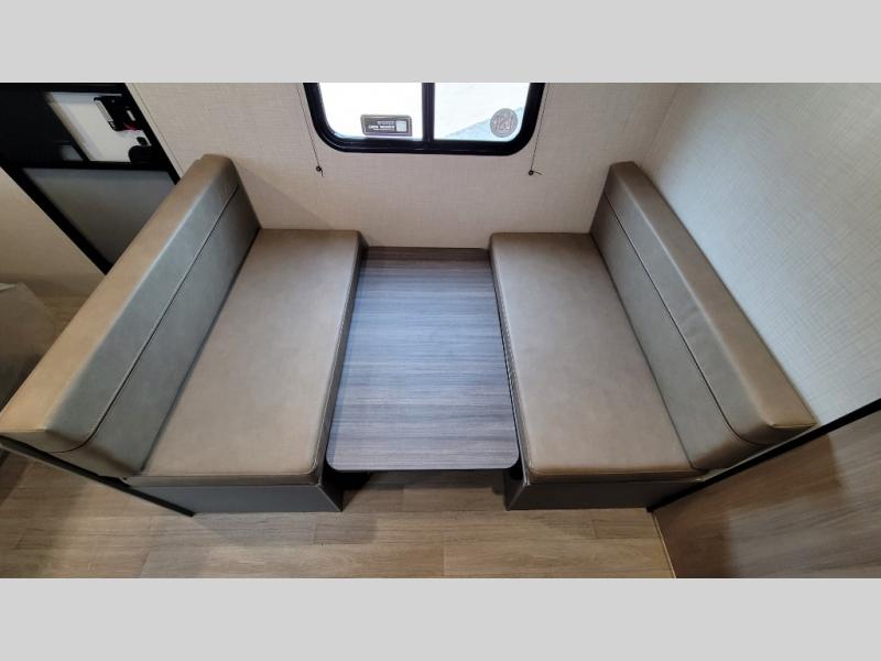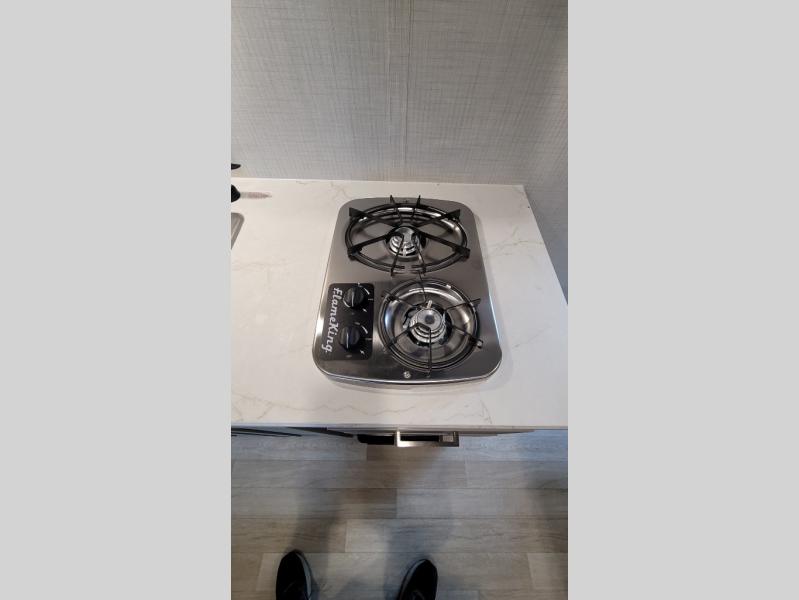 It's time to enjoy the great outdoors with family and friends at the campgrounds you like to meet everyone at! This trailer will allow three to four to camp comfortability with amenities such as a two burner cooktop, a 3.3 cu. ft. refrigerator, and a spacious rear full bathroom. The booth dinette offers a place to dine, read a book and even house an overnight guest. This model also includes a walk-around queen bed that will make your space feel a little more like home!