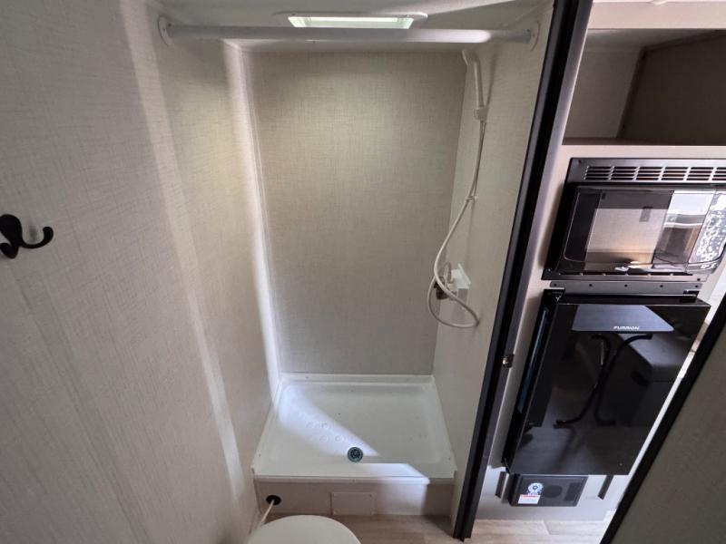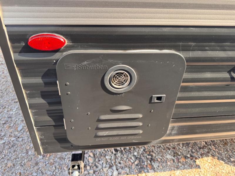 It's time to enjoy the great outdoors with family and friends at the campgrounds you like to meet everyone at! This trailer will allow three to four to camp comfortability with amenities such as a two burner cooktop, a 3.3 cu. ft. refrigerator, and a spacious rear full bathroom. The booth dinette offers a place to dine, read a book and even house an overnight guest. This model also includes a walk-around queen bed that will make your space feel a little more like home!