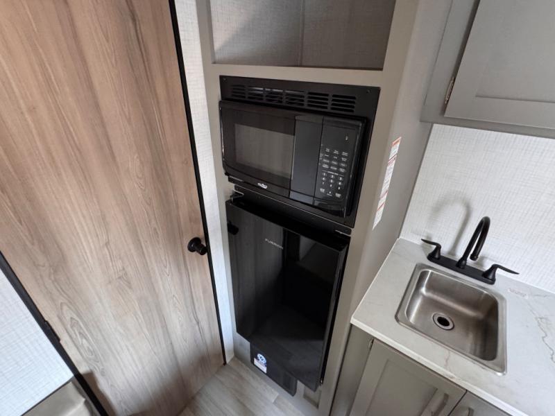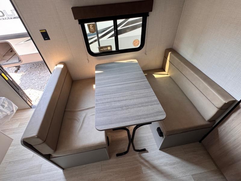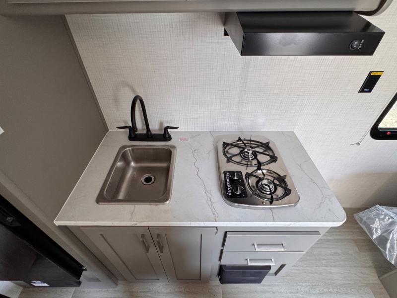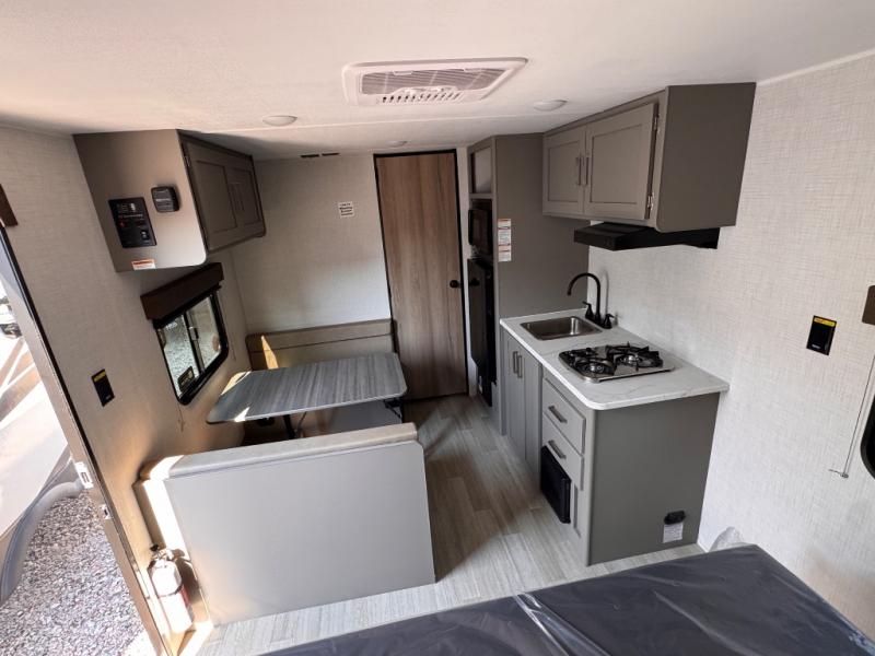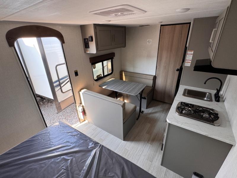 With any Hideout Mini travel trailer by Keystone, you will enjoy lightweight towing thanks to their single-axle! The AlphaPly TPO roof membrane is ultra durable, and the power awning will provide protection from the sun as you relax in your camp chairs outside. Each model includes blackout night shades, LED lighting, plus many more interior comforts. There is also a roof A/C and 20K BTU furnace to keep you comfortable, plus a tankless water heater for endless hot showers!